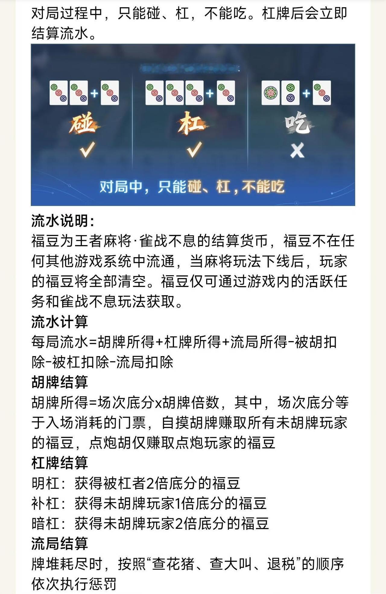 2026年一开年,“王者荣耀”就把麻将桌搬进了峡谷。不是皮肤彩蛋,是真能上牌桌打几圈那种。 1月9号,体验服更新公告写得明明白白。新玩法叫“王者麻将·雀战不息”,就在稷下学院里开桌。规则用地道的四川麻将,万筒条三色牌,开局换三张,还得定缺门。有意思的是,只能碰和杠,不能吃牌,这算盘打得精,一局时间就这么压下来了。 结算用“福豆”,听着喜庆。但天美把话说得很死:玩法下线就清空,充钱都没门。自摸全收,点炮只赢一个人的,流局还要查花猪查大叫,惩罚条款写得清清楚楚。匹配模式算段位,好友模式算友情点,两手都硬。 玩家这边可热闹了。有人喊“过年线上约牌,省得亲戚问工资”,也有人调侃“继消消乐之后,真成游戏厅了”。那个6块钱的米莱狄麻将皮肤“青瓷雀吟”,倒是一致好评,觉得文化联动算是玩明白了。 往上翻,2025年就有玩家用麻将牌拼王者峡谷,幺鸡当野怪的梗传得挺广。这波官方出手,怎么看都像是对UGC的回应。 说到底,天美看准了春节档的社交刚需。实打实的四川规则,限时的福豆机制,都是在划清娱乐和赌博的线。 游戏嘛,本就是让人开心的,能在峡谷里听个胡牌声,也挺有意思。文化传播这事,不就是在一次次“碰”和“杠”里,不知不觉就入味了吗?