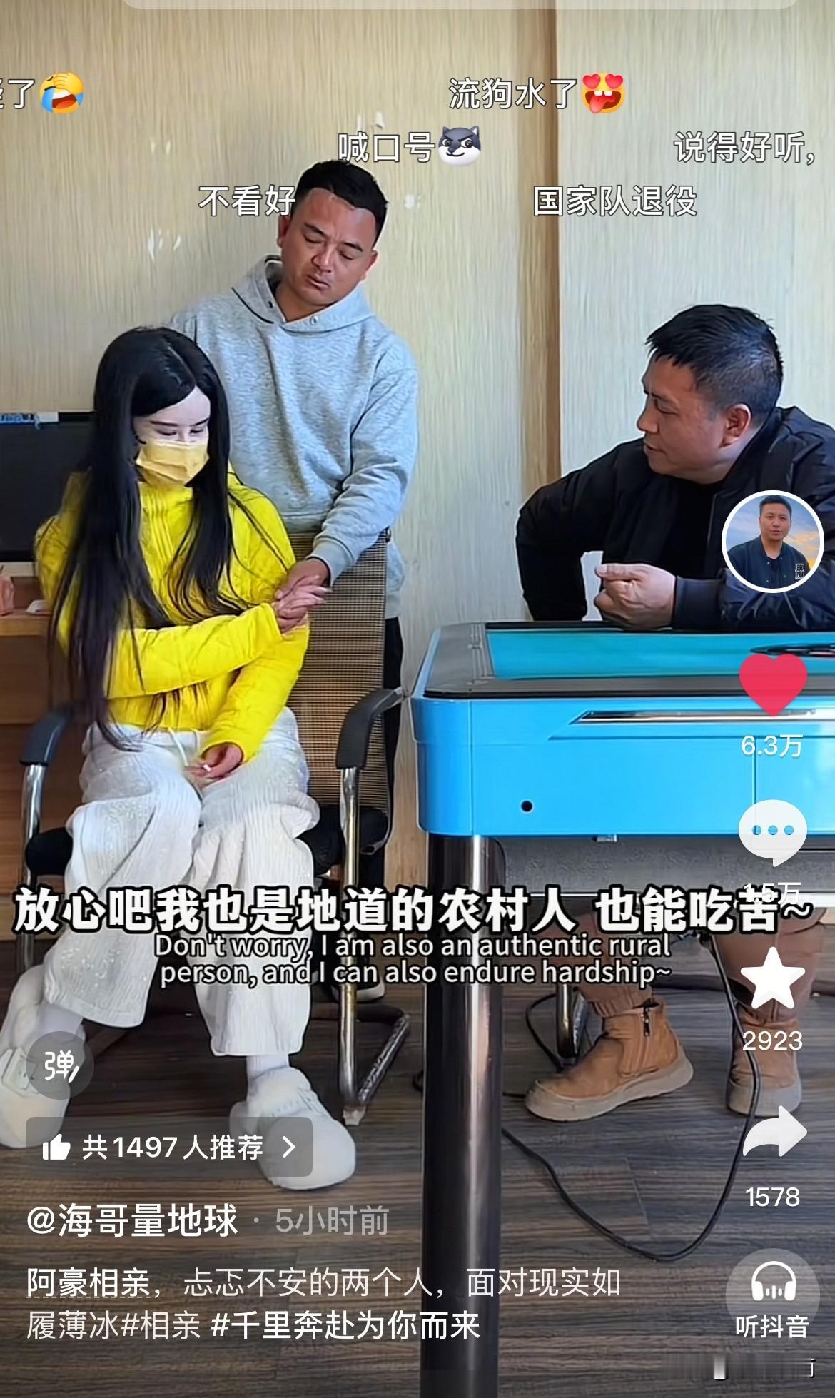 现在掉头还来得及,面对海哥的质疑,蓉儿斩钉截铁地回复:“不掉头!” 钦佩勇敢的蓉儿如此坚定,即便全网,连海哥都不看好他们。可蓉儿铁了心要和阿豪在一起! 尽管压力不小,但蓉儿坦言,会用行动证明自己的真心。 网友们一头雾水,搞不懂蓉儿哪根筋搭错了,实在不明白她看上阿豪什么了。 阿豪也说过,自己家状况糟糕! 蓉儿表示自己虽不是富婆,但吃住不愁。未来阿豪在哪,她就跟到哪!更何况自己也是农村出来的,能够吃苦! 阿豪真是上辈子拯救了银河系! @海哥量地球
