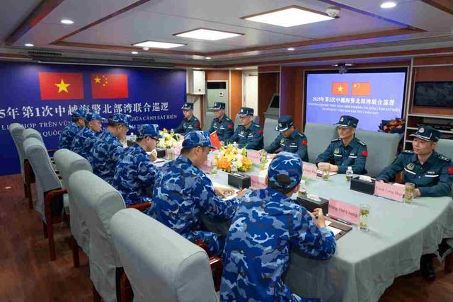 2025年4月24日中越海警第一次北部湾联合巡检,双方在4302舰会晤