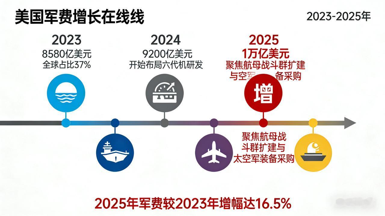 穷兵黩武的美国到底要走向何方?1.5万亿美元军费暴露霸权野心 特朗普一句“2027财年军费要从1万亿美元增至1.5万亿美元”,让全球哗然。这个较2026财年暴涨超50%的预算提案,被其包装成“打造梦幻大军”的国家安全大计,实则是美国穷兵黩武的又一赤裸裸写照,背后藏着霸权维护、利益捆绑与全球动荡的三重危机。 这笔天价军费的野心,早已突破“自卫”底线。特朗普直言靠关税“巨额收入”撑起加码空间,却避而不谈资金的真实去向:一边是“金穹”天基反导系统这类新世纪“星球大战”计划,企图垄断外空军事优势;一边是第六代战斗机、新型航母等“吞金巨兽”的批量更新,只为巩固全球军事威慑力。更讽刺的是,美国2023年军费已占全球37%,相当于其后多个国家总和,如今还要逆势加码,本质是信奉“丛林法则”,想用绝对武力碾压一切竞争对手。 背后的利益链条更是清晰可见。美国军工复合体早已沦为“吸金机器”,单一垄断合同、成本虚报、议员寻租等乱象丛生,军费成了利益集团的“摇钱树”。而这些军工企业正是特朗普政府的重要政治支撑,此番大幅增支,不过是用纳税人的钱回报利益盟友,将国家政策绑上资本战车。 但疯狂扩军的背后,是美国难以掩盖的内外部困局。国内层面,联邦债务已突破37万亿美元,2024财年债息支出就超8700亿美元,远超当年军费,再添5000亿军费无疑是饮鸩止渴;为了凑钱,政府只能削减教育、医保、环保等民生开支,让4000多万面临食品短缺的美国人雪上加霜。国际层面,美国一边接连退出世卫组织、《巴黎协定》等多边机制,一边靠军费扩张制造对立,必然引发新一轮军备竞赛,让本就动荡的全球安全格局更趋恶化。 从动辄对他国动武,到如今靠天价军费维系霸权,美国正沿着“穷兵黩武—债务高筑—民生凋敝—对外转嫁危机”的恶性循环越走越远。1.5万亿美元买不来绝对安全,只会让更多国家看清其霸权本质,加速全球多极化进程。当霸权逻辑遭遇历史潮流,这样的疯狂扩张,终将是搬起石头砸自己的脚。 美国军事实力 美国国防支出 美军备预算 美国军费