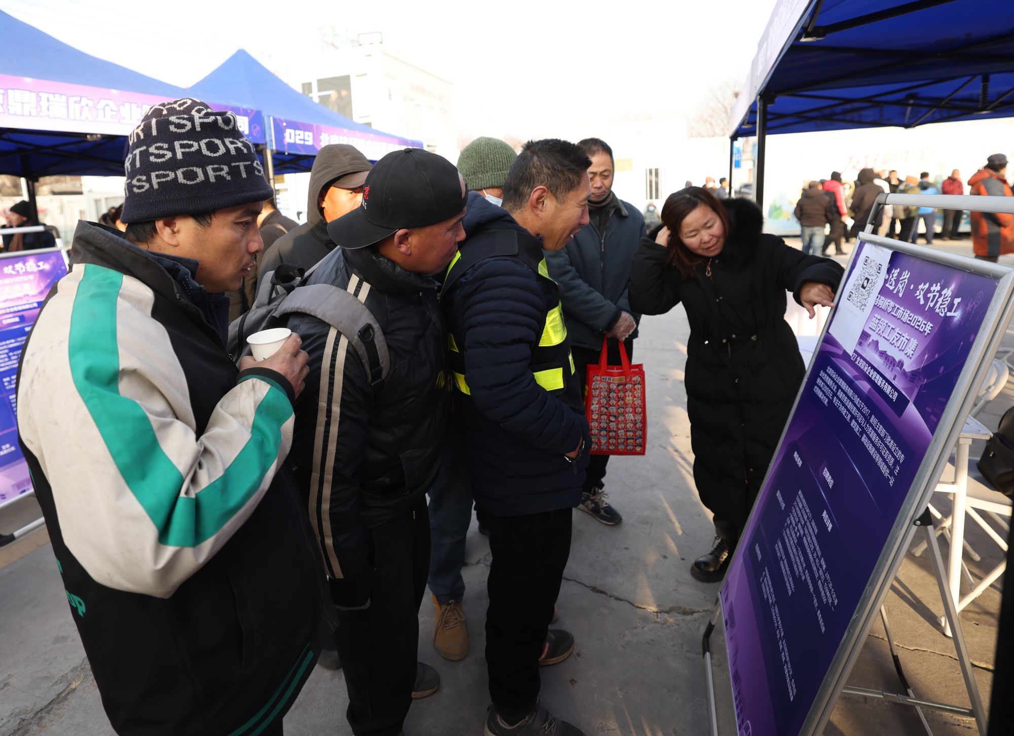 1月9日,北京市人力资源和社会保障局在马驹桥零工市场组织开展“暖冬送岗双节稳工”专场招聘会。新京报记者王贵彬摄