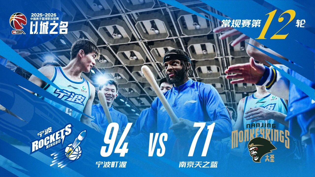 虎扑01月10日讯CBA常规赛,宁波94-71战胜南京。