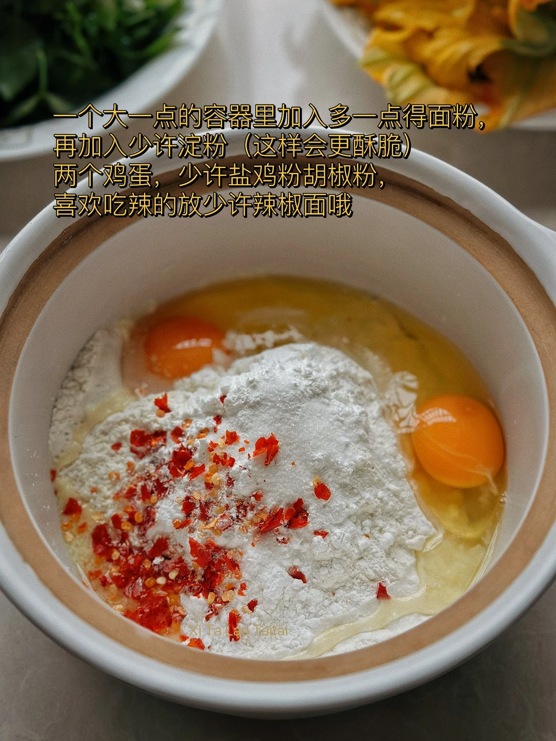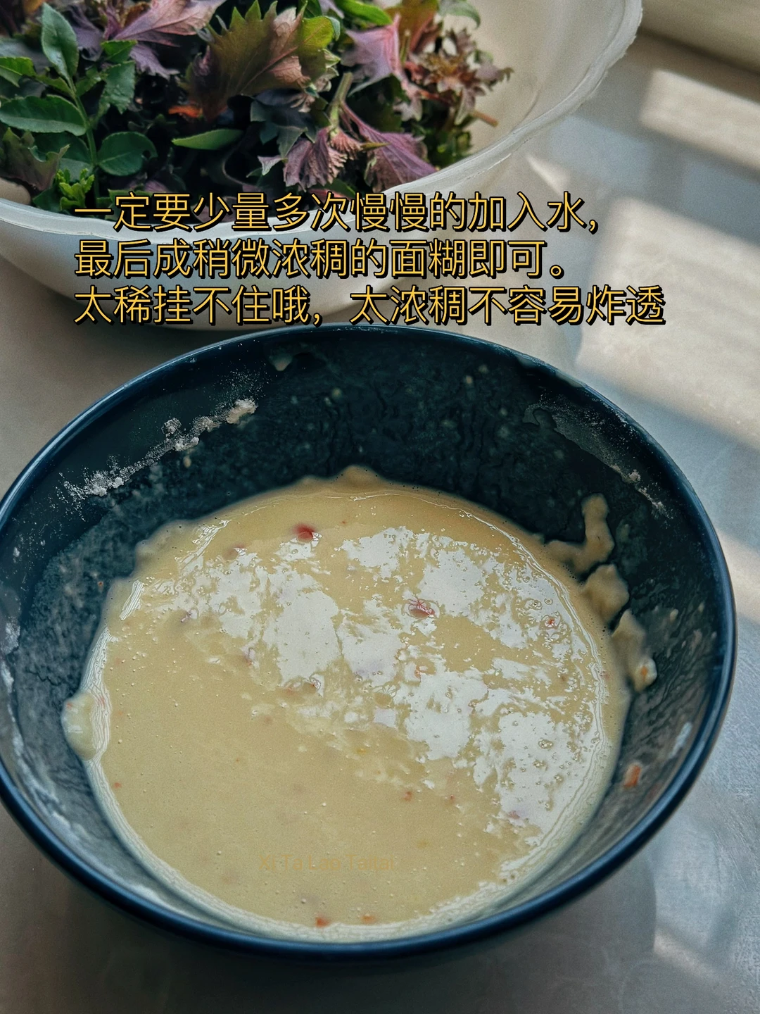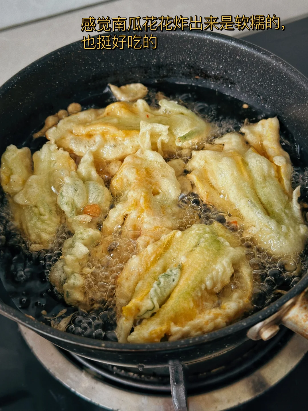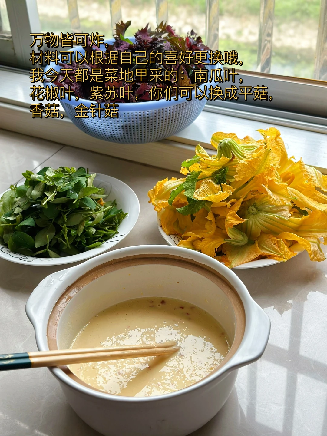 炸花椒叶小时候妈妈会经常做来吃 导致到现在我的记忆力一直记得那个味道 四年没有回老家今年选择了夏天回去 果然地里各种瓜果蔬菜根本吃不完,炸花椒叶粑粑是必须要安排上的 吃了一顿就刹不住车了,都说好好吃🤤,当零食也不错的 1. 万物皆可炸,材料可以根据自己的喜好更换哦,我今天都是菜地里采的:南瓜叶,花椒叶,紫苏叶,你们可以换成平菇,香菇,金针菇 2. 给你们看看这个紫苏叶子和花椒叶子,花椒叶一定要掐顶部最嫩的地方尖尖才好吃哦 3. 一个大一点的容器里加入多一点得面粉,再加入少许淀粉(这样会更酥脆)两个鸡蛋,少许盐鸡粉胡椒粉,喜欢吃辣的放少许辣椒面哦 4. 一定要少量多次慢慢的加入水,最后成稍微浓稠的面糊即可。太稀挂不住哦,太浓稠不容易炸透 5. 叶子放进去像这样挂住粉浆,别弄的太大哦 6. 开始的时候大会炸,刚放进去的时候不要马上碰它十几秒定型以后碰一下就飘起来了,感觉快好的时候再转小火炸,不然容易糊哦 7. 两面炸至金黄色以后捞起来,放一会儿就很酥脆了,感觉南瓜花花炸出来是软糯的,也挺好吃的 8. 看着就好吃吧,炸这个是一个细致的活儿,需要有一点耐心才可以哦 9. 你们可以根据自己的口味再在上面撒一点五香粉之类的,我觉得这样吃已经超级香了