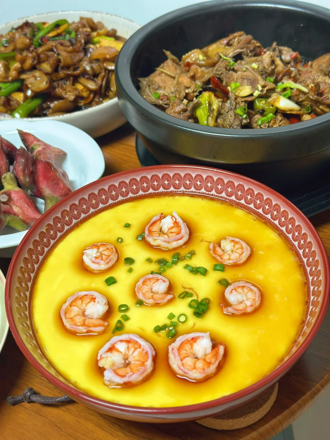 没有想到今年阳历和农历生日只相差四天,以往每年都会来家里吃饭今年也照旧,正好前段时间回老家带回来了正宗的家养土鸡做个土鸡煲吃,有个闺蜜不怎么能吃啦用带回来的土鸡蛋做了个虾仁鸡蛋羹,太赞了嫩到没有朋友,最后我淋薄盐生抽的时候轻轻的都裂开了哈哈
