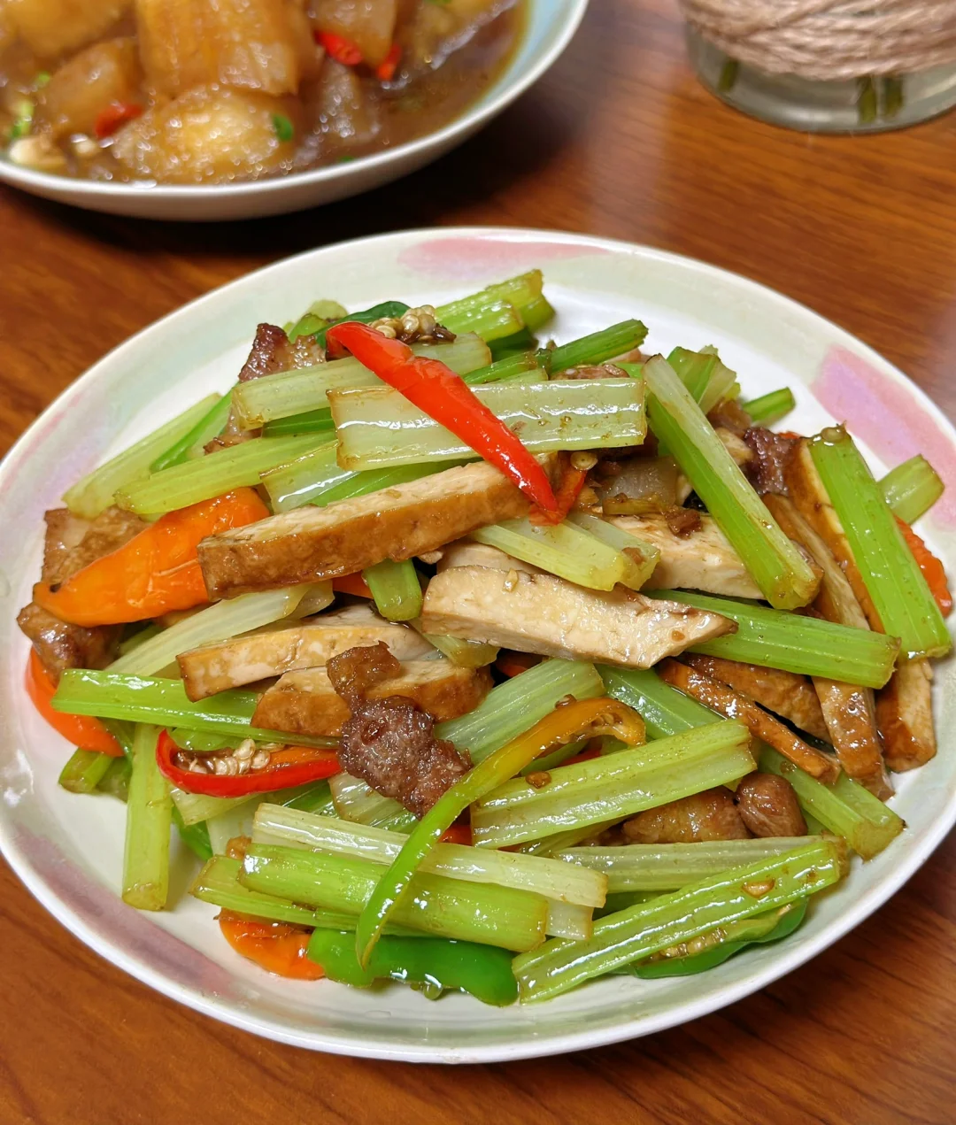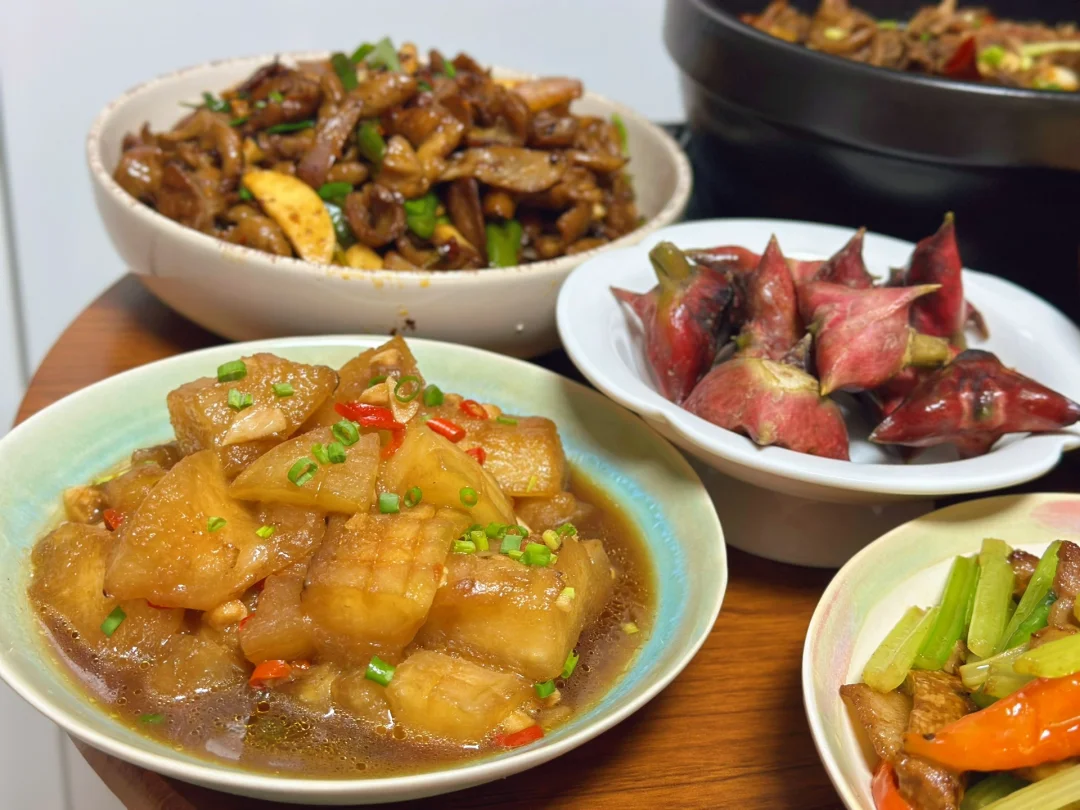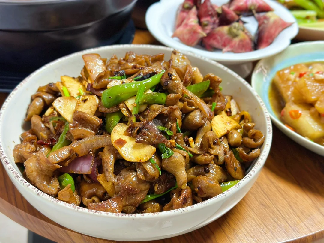 貌似我们几个人都很喜欢吃肥肠,另外一个朋友提前买了肥肠给了我早上起来用剪刀剪开把里面的肥油全部弄掉,在卤一下然后再炒,好吃是好吃麻烦也是真的麻烦啊,四个人的午餐不用做太多因为我不怎么喜欢吃剩菜哈哈,冬瓜也是老家带回来的做了红烧口味儿的