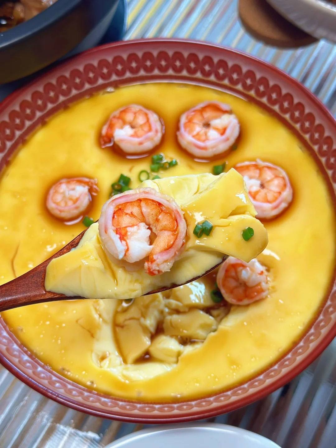 虾仁去壳去虾线,然后在热水里焯下水时间不要太长,变色捞起来即可,鸡蛋羹好了以后把虾仁放进去再继续蒸十分钟出锅,淋入少许的薄盐生抽或者是香油,你们根据自己的口味来