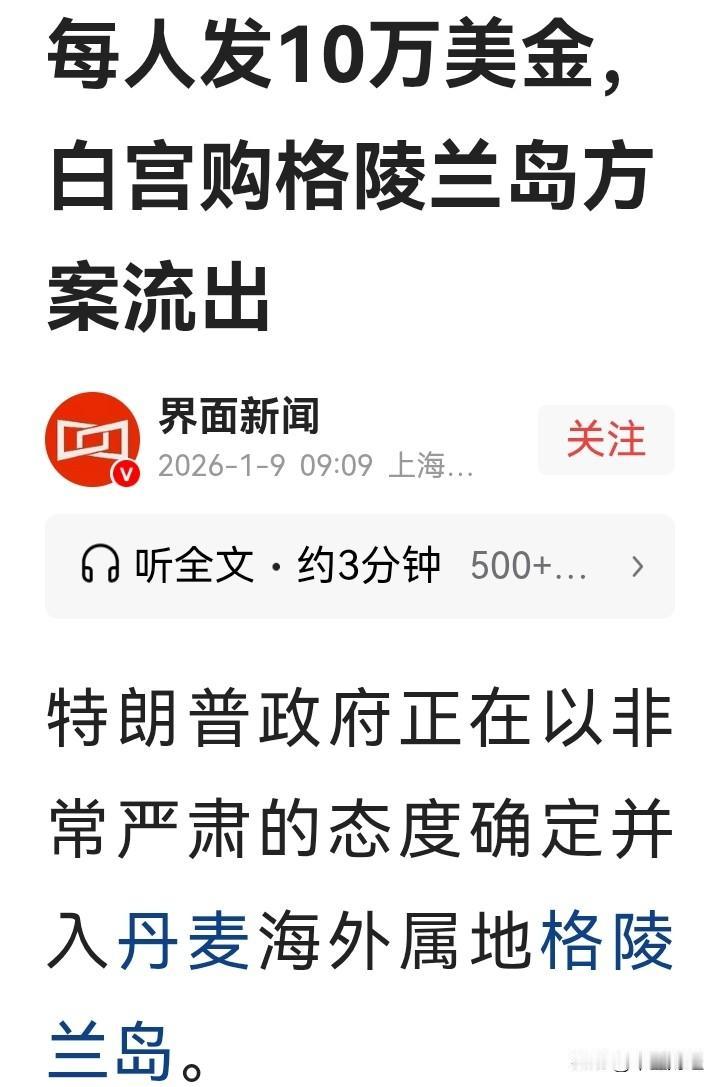 【想得美!】美国打算给每位格陵兰岛公民10万美元,以此方式获取格陵兰岛,这靠谱吗? 特朗普的提议更像是一场政治作秀,实际操作近乎不可能。格陵兰岛是丹麦的自治领地,主权归丹麦所有,岛民自身做不了主。即便岛民同意,丹麦政府也断然不会应允,毕竟这涉及国家主权和国际法。 再者,岛上公民仅5.6万人,每人10万美元,不过56亿美元!以这样的价格买下一个面积比丹麦还大的岛屿,简直是异想天开。格陵兰岛的资源价值、战略地位和经济潜力远非这点钱能衡量。况且岛民有着强烈的独立意愿,不会轻易被金钱所诱惑。 岛内数据表明,地广人稀的格陵兰岛蕴藏着全球近三分之一的稀土储量,还有175亿桶石油和4.15万亿立方米天然气。56亿美元怎么可能将其拿下?特朗普的算盘打得太精啦!格陵兰岛私设 格陵兰岛危机 格陵兰主权 格陵兰岛现状 格陵兰岛计划 美国占格陵兰岛 格陵兰争议