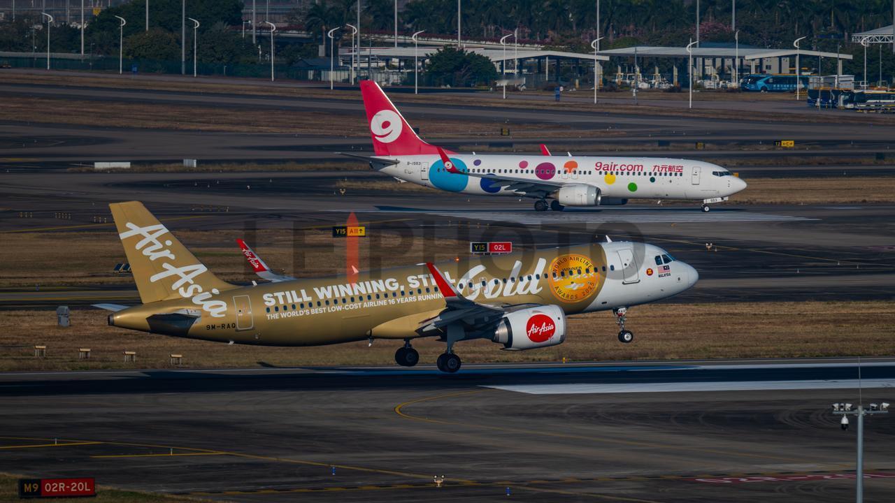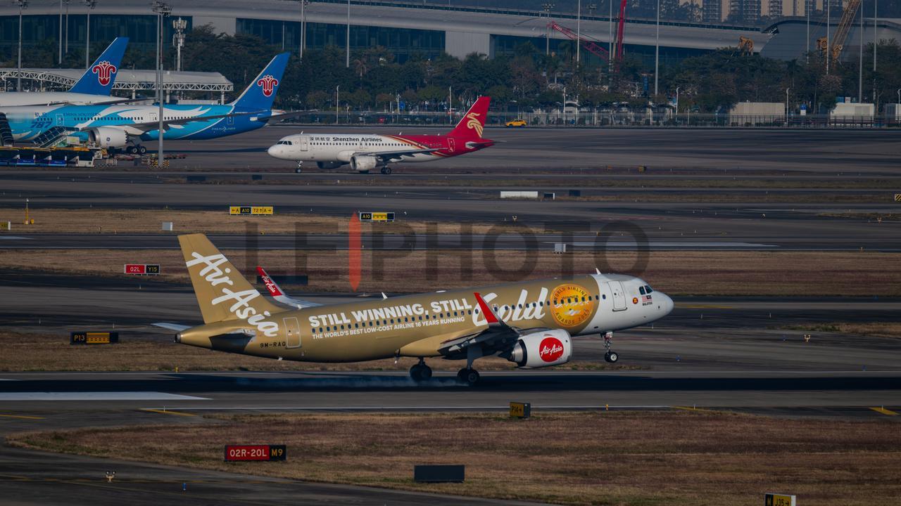 一架金色涂装的亚航空客320正在降落🛬