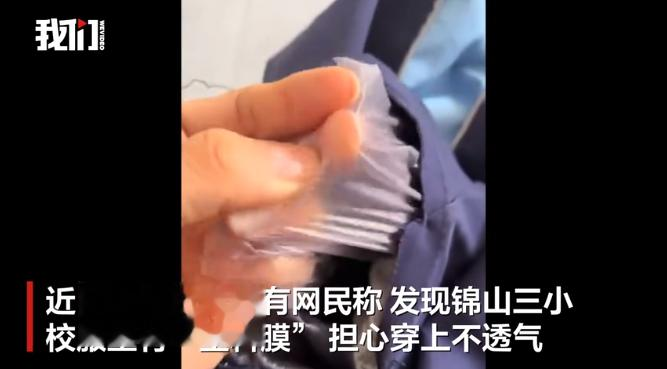 近日,内蒙古赤峰有网民称,发现锦山第三小学校服里有“塑料膜”,担心孩子穿上不透气。