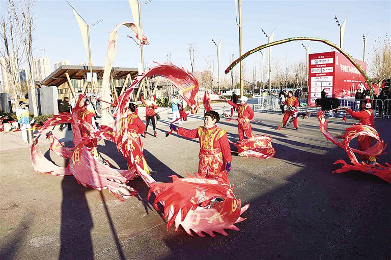 黄花沟公园舞龙表演。王田明摄