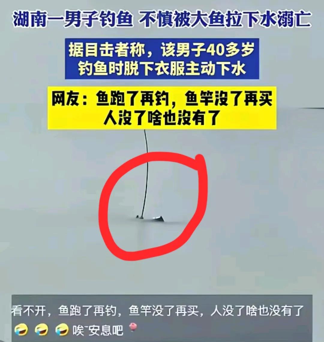 真的是要鱼不要命!湖南一男子钓鱼,居然被鱼拉下水溺亡! 这也太想不开了,你不想放过鱼,鱼也没给你机会!别说鱼了,相对于自己的生命来说,鱼竿都不算啥? 一条鱼,一根竿,怎么也抵不上鲜活的人命,这件事也给所有钓鱼爱好者敲响警钟:野钓千万不能掉以轻心,远离无防护的危险水域,随身备好救生装备,遇到大鱼别较劲,该放手时就放手。钓鱼钓的是闲情逸致,别让一时的贪念,酿成无法挽回的悲剧。