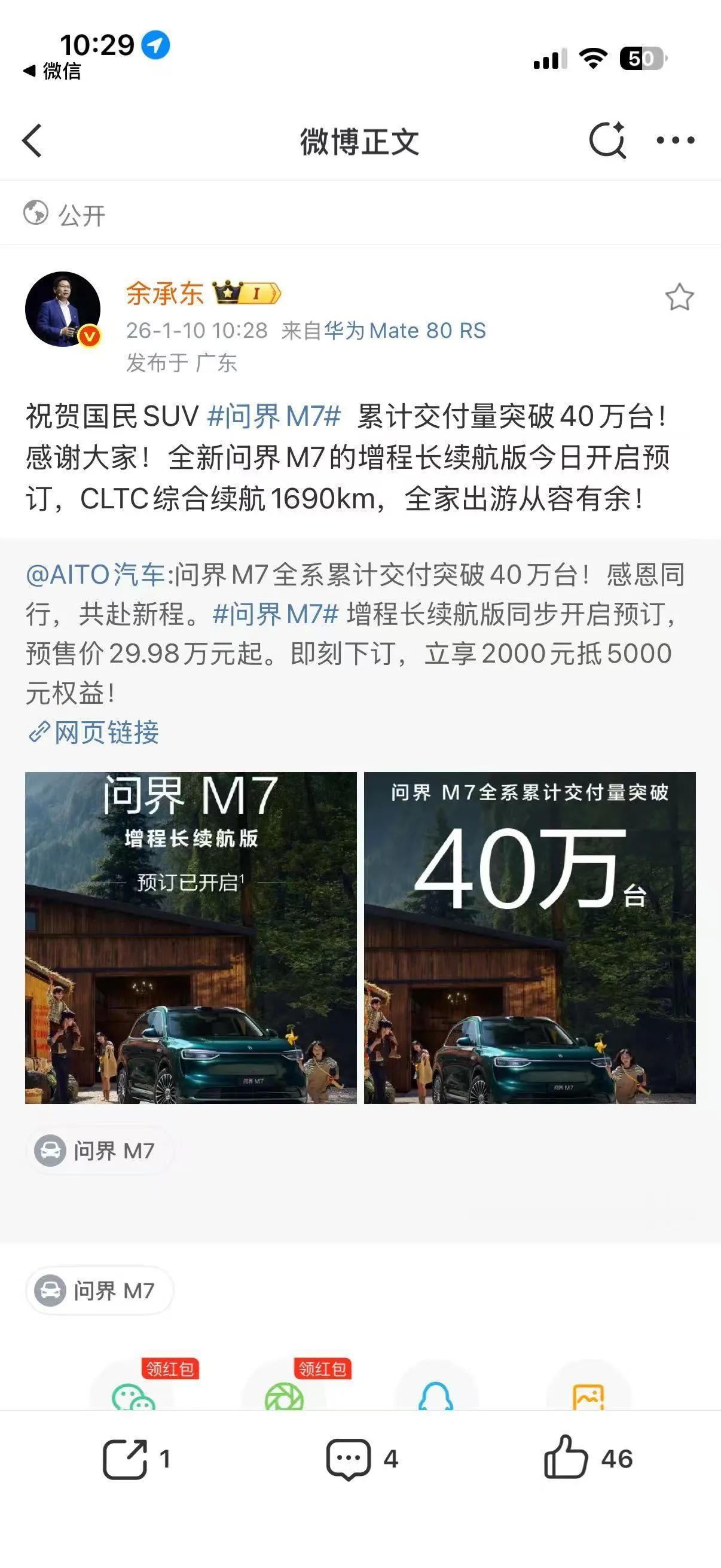 在当前新能源SUV市场中,用户常面临“续航”与“智能”难以兼得的困境。而问界 M7增程长续航版的推出,标志着一种真正面向真实生活场景的产品思路,既满足长途出行的可靠性,又不失高端智能体验。 该车型采用先进增程技术,在纯电模式下提供媲美电动车的静谧驾乘感受。当电量不足时,增程器自动启动发电,确保动力持续输出,综合续航超过1300公里。这一设计有效解决了露营、自驾等场景下的补能痛点,让用户专注于旅途本身,而非路线规划中的充电节点。 智能化方面,鸿蒙座舱实现语音控制空调、娱乐、导航等功能,支持多用户并行操作,提升全家出行体验。华为乾崑智驾ADS 4系统则在弯道、坡道及车流密集路段提供精准辅助,增强行车稳定性与安全性。值得一提的是,问界M7全系已获得超40万家庭用户的选择,其成熟度与可靠性经受住了市场长期检验。现该长续航版本已开启小订,为追求品质生活的家庭用户提供更具前瞻性的出行工具。 问界M7增程长续航版开启预售 问界M7全系累计交付突破40万台