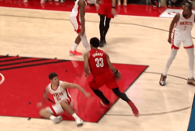 卡马拉突破直接晃倒谢泼德,杀入禁区完成单手战斧劈扣