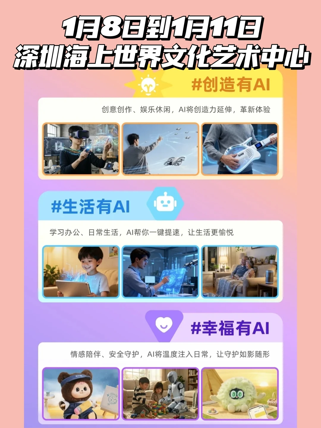 深圳的朋友们有福了,在家门口就能免费玩转CES同款的全球前沿科技盛宴。这份2026开年必看的保姆级观展攻略请收好,“妙物 · 智趣——阿里云通义智能硬件展”1.8~1.11就要在海上世界文化艺术中心开展了。