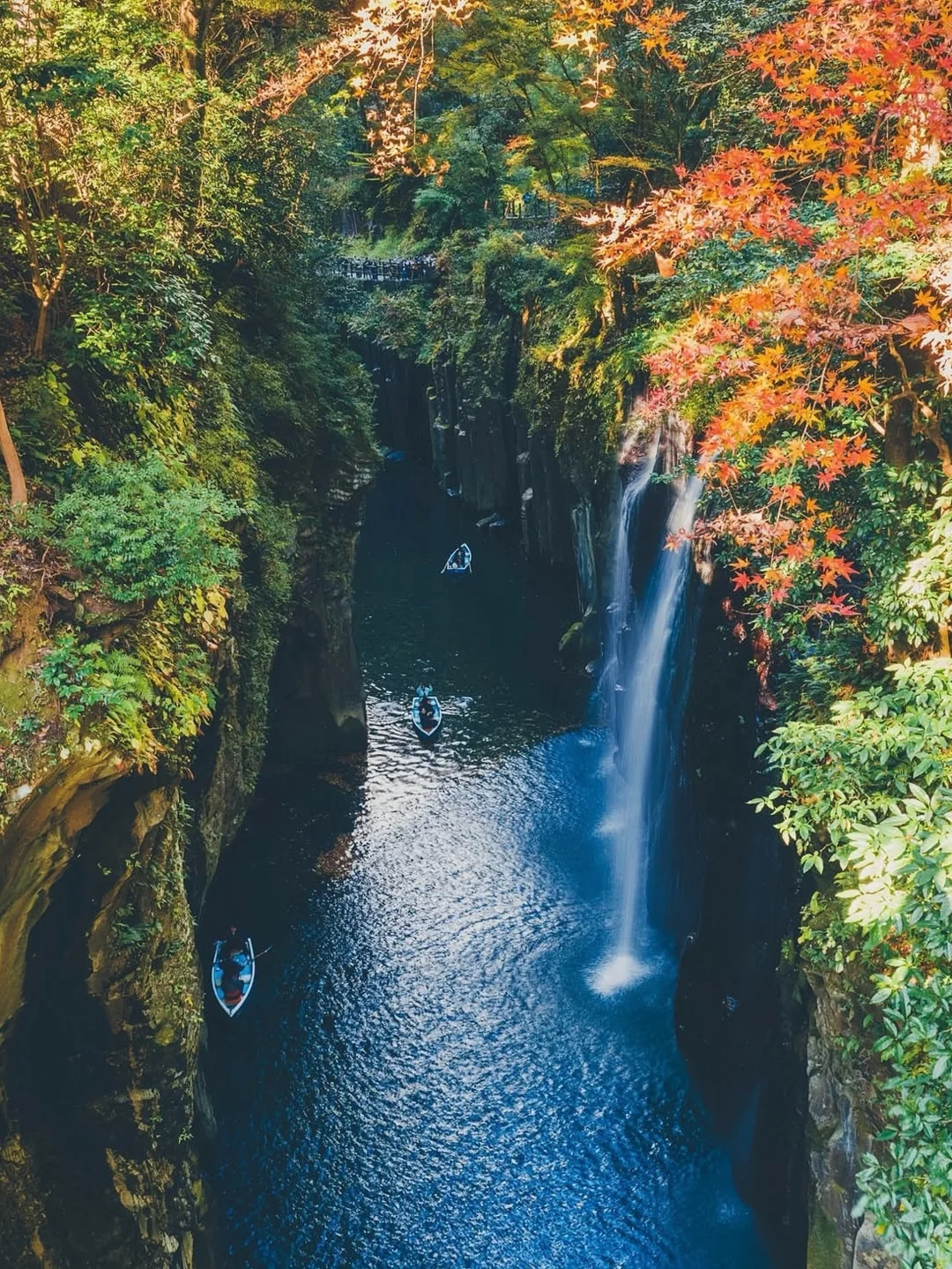 如果你脑海里的日本只有东京、大阪、京都—— 那宫崎真的会给你一个惊喜。 这里像是被调高了饱和度: 蓝到不真实的海,会发光的天空,还有一点南国的风。 🌊 日南海岸 沿着海岸公路前行,一侧是闪亮的太平洋,另一侧是层层绿色山坡。面朝大海的摩艾石像静静伫立,像古老的守望者。阳光落在海面,碎光闪烁——真的像动漫OP画面。 🪨 青岛神社 & 鬼之洗衣板 「鬼之洗衣板」是罕见的海岸岩层地貌, 被海浪雕刻出整齐的条纹,一直延伸进浪花中。 浪声低沉而有节奏,让人不自觉慢下来。 顺着小路走进青岛神社,海的开阔与神社的宁静自然交融。 🌄 高千穗峡 如果说日南海岸是明亮的宫崎, 那这里就是神秘的一面。 翡翠色的峡谷水面泛着微光,瀑布声在谷中回荡, 乘船而行,水雾扑面,清凉刚刚好。 🚗 交通 从福冈或大阪飞【宫崎机场】最方便; 想自由玩日南海岸,强烈推荐租车,沿海开真的太爽了。