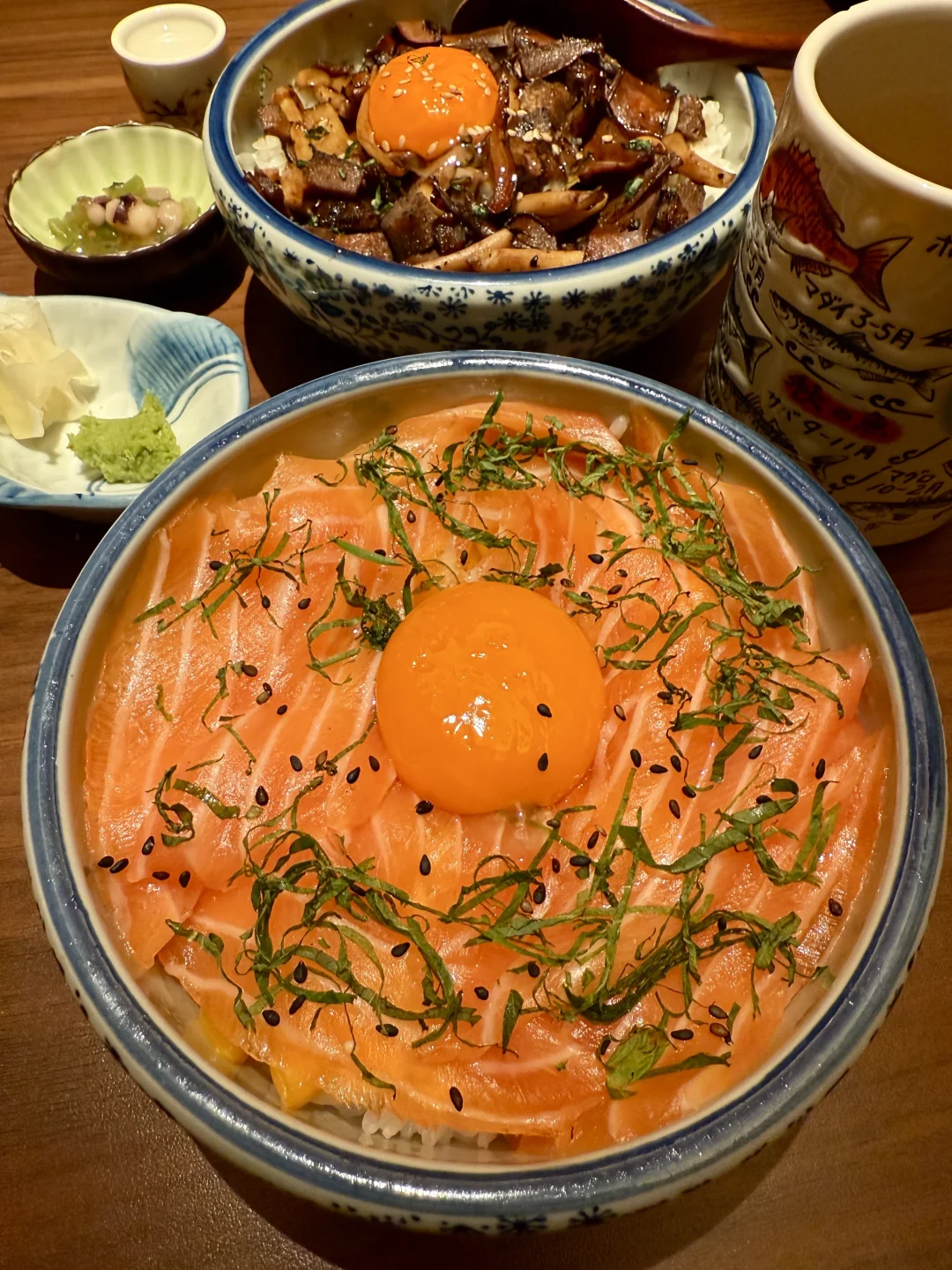 日剧里面梦幻蓝气泡墙🫧!!! 新出的干式熟成金鲷鱼好好吃啊 软糯糯的,沾上酱料,我一个人可以吃完一整条! 塔塔酱配炸虾我也强推!酥脆这满足感谁懂 一人食也会来吃的三文鱼盖饭🍣相当美味!滚菜单也不踩雷!