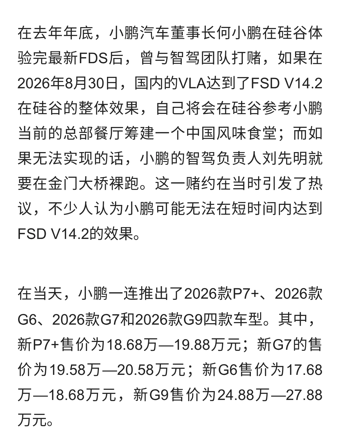 四车齐发,小鹏增程大军来了!智驾老大:“裸奔赌约”稳赢