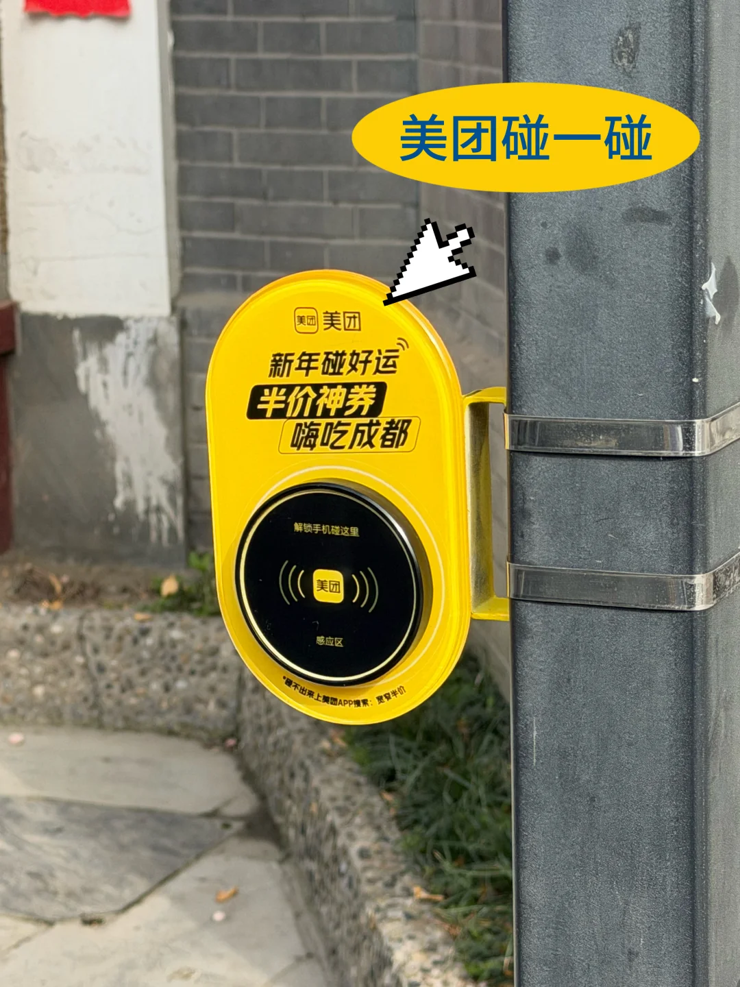 直接到有美团神券小黄灯的店铺用手机碰一碰,或者灯箱上🧹一下,就有机会膨出半价餐饮神券!