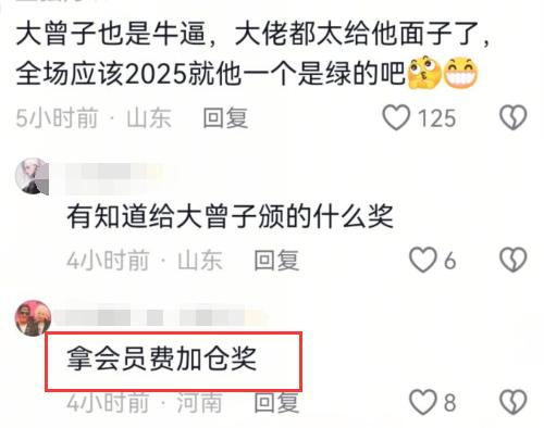 大曾子居然拿奖了,这也太搞笑了吧!最近知名游资大曾子参加淘股吧嘉年华大会,现场来了不少游资大佬,大曾子不但上台演讲,还拿了奖杯,不少网友都好奇,他2025都是绿的到底得的是什么奖,甚至有人调侃,应该是会员费加仓奖,本人特意在台上录了一个视频发短视频。不得不说,大曾子还是非常受欢迎啊,虽然水平一般,但情绪价值还是给的满满的,本人也非常搞笑