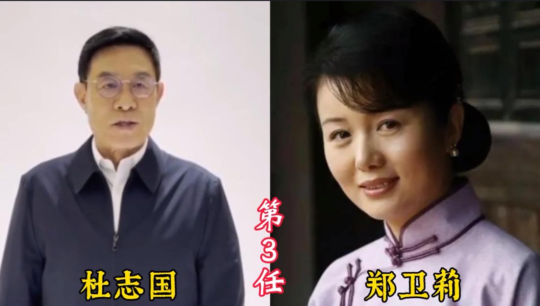 杜志国,第一任妻子杨丽,舞蹈演员,气质脱俗,俩人一见钟情。 杜志国,第二任妻子赵娜,温柔体贴,性格相投,儿子却不支持。 杜志国,第三任妻子郑卫莉,没有轰轰烈烈的爱情,只有陪伴到老的相守。 婚姻适不适合彼此只有经历过的人才知晓,所以有的人结婚离婚再结婚,不断的在寻找最适合自己的一段婚姻,最终找到了那个能够和他们相伴余生的伴侣。 郑少秋,七十至九十年代红遍东南亚各国以及两岸三地的武侠小生,无数人心目中的白月光,他有过三段婚姻,众人熟知的沈殿霞是他第二任妻子,此前的原配卢慧茹是圈外人,给他生了大女儿,与沈殿霞离婚后,郑少秋娶了女星官晶华,三段婚姻有四个女儿,大女儿已经去世。 王刚,内地影坛的戏骨演员,七十年代中期时娶了第一位妻子,婚姻仅维持一年,育有一个女儿,90年代中期时娶了第二位妻子歌星成方圆,没有孩子的羁绊俩人和平分手,2005年时娶了在网上认识的女孩郑艳东,比他小20岁,婚后老来得子。