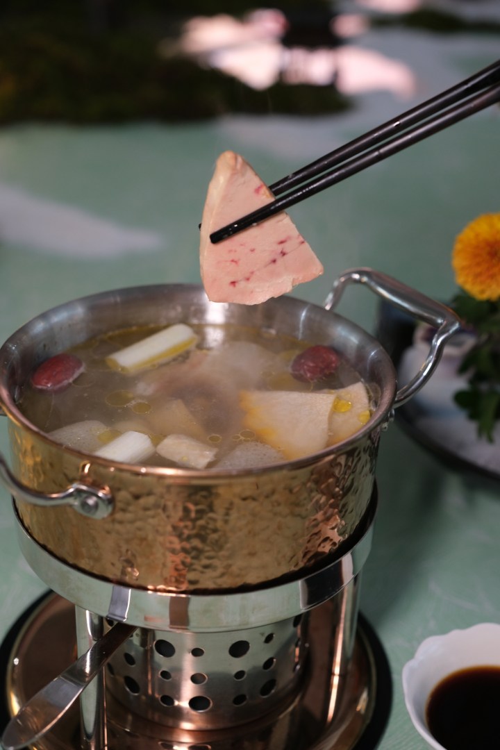 小火锅是柳莺里宋宴的经典,当然这里是称作”拨霞供”,据南宋林洪所著《山家清供》,雪天获兔,“薄批”肉片,围炉自涮,汤中肉片如霞,故名“拨霞供”。水仙拨霞供是指涮的菜肴以海鲜为主,清淡、鲜美。