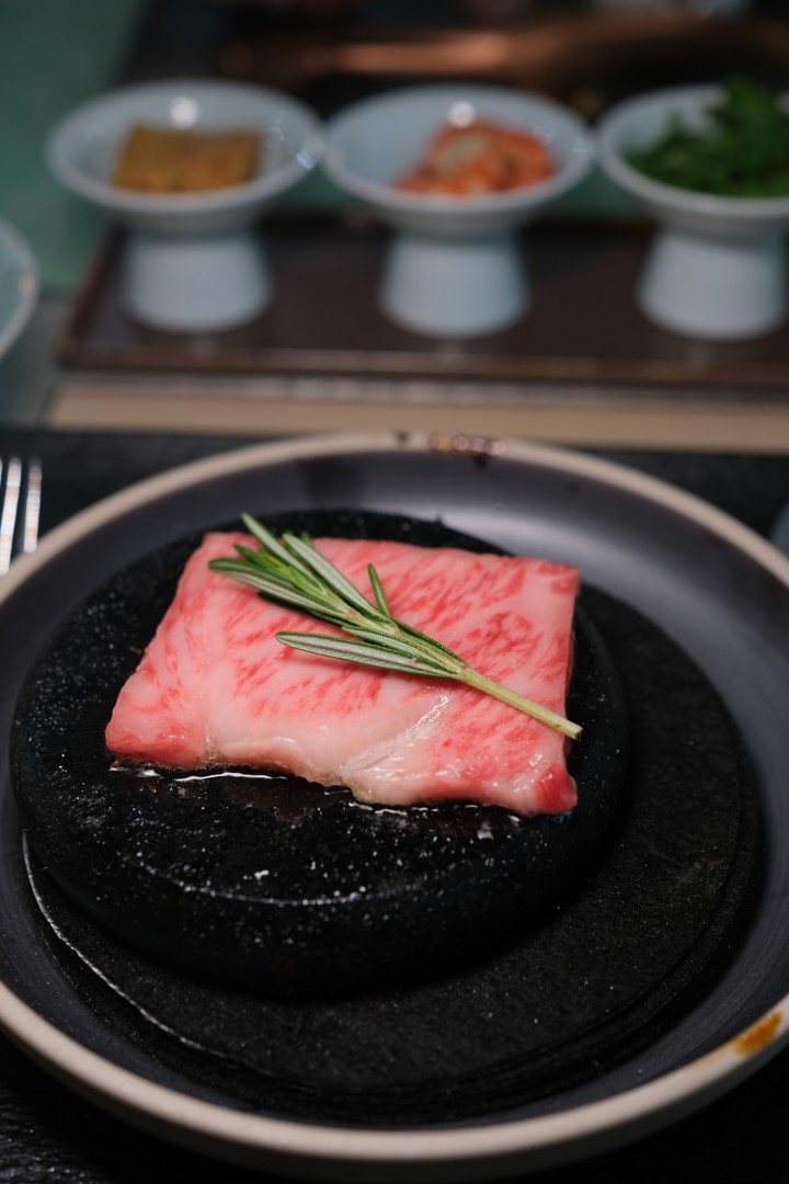 整场宴会的华彩部分是行政总厨钮有强现场演绎“炙烤雪花牛”。炙烤这种古老的烹饪手法在《诗经》中就有记载,顶级牛肉的油脂在滋滋声中弥漫出奶乎乎的香气,久久萦绕,这是冬天大口吃肉的幸福感。