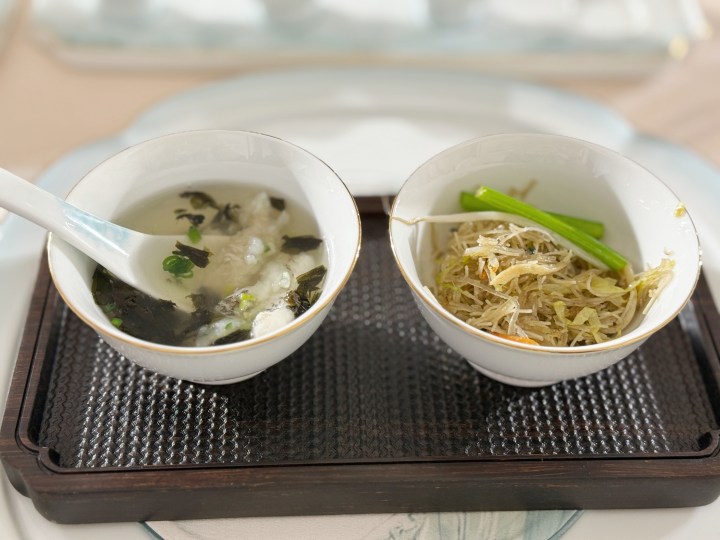 烩鱼羹是在传统的基础上做改良,不只是在鱼汤里加入大量胡椒粉,还有发酵的辣酱,与杭州米醋做成的一个复合味形,提鲜、增香且解腻,更符合当下年轻人的口味。