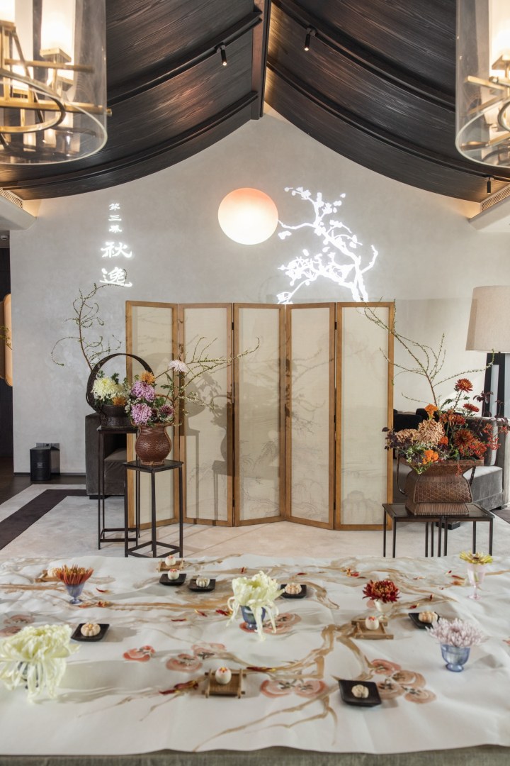 同样是以雅为题,浙江西子宾馆在西园茶馆做了一场名为“四时画境”的沉浸式琴茶剧场。结合西子四时的画境,分为“琴茶画游”与“冬梅境宴”上下两篇。