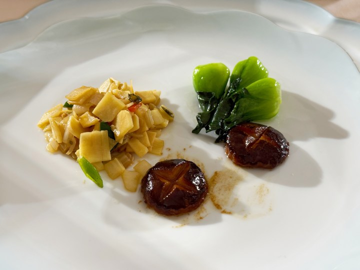 冬笋煮花胶所用的花胶由任太挑选,这一味老底子粤菜里的高级食材,经过本地霜打油冬儿菜和冬笋的搭配,忽然就拉近了距离。