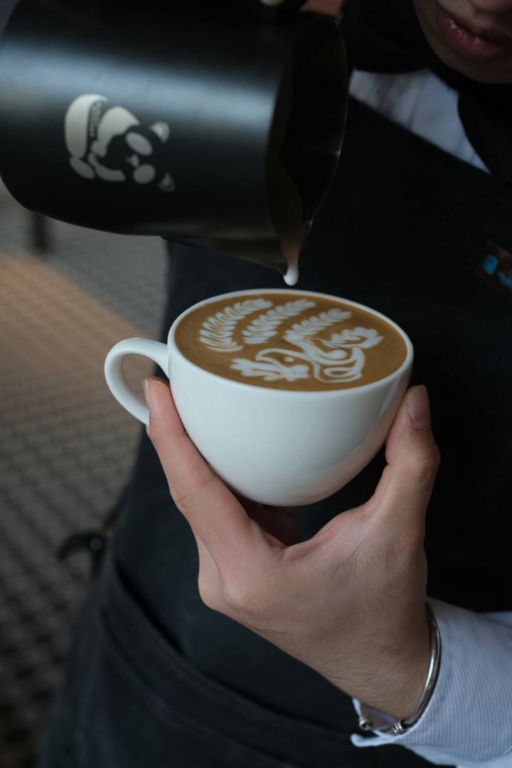 与往年以茶为主不同,今年的分享会放在醇想吧,由曾在拉花比赛中获奖的咖啡师主讲,客人可以选择图案,小哥哥腕底流转,奶泡倾泻间,精美图案便会呈现于杯面。随后便是专业手冲咖啡时间,从择豆、称量、研磨等,细致讲解。