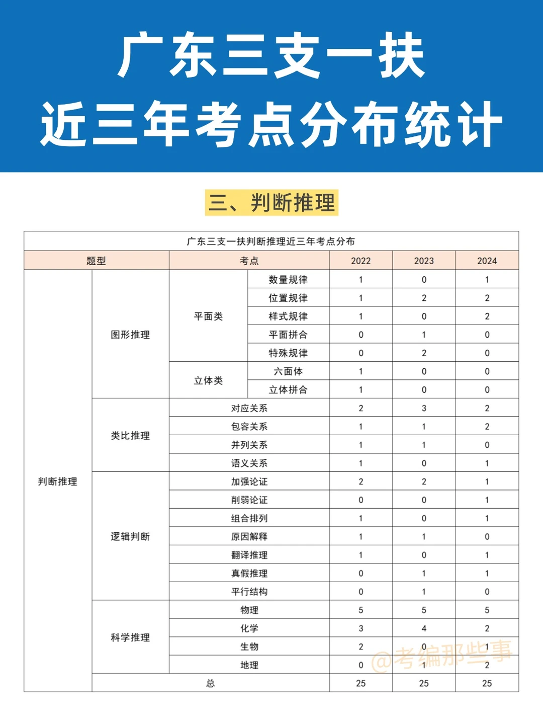 广东三支一扶5月24日笔试,近三年各模块考点分布如上