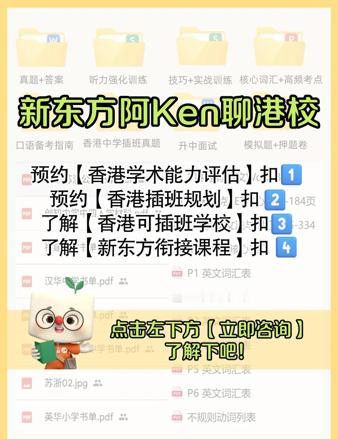📚 香港中小学插班时间表|保姆级攻略 不会还有人认为,来香港插班只要报名填表就够了吧?😰 🙌🏻如果你正在准备香港秋季插班,那么1~3月就是关键期,越是想上好的学校,需要筹备时间越长💥 ❌插班流程复杂 ❌时间节点太多 ❌不知道怎么匹配学校 别慌✅这份保姆级【香港插班时间表】帮你理清思路! —————— 📅 香港秋季插班时间轴 + 对应任务 1️⃣ 年后-3月:前期准备 ▫️收集全港学校资料📖筛选适配院校(位置、课程体系、口碑评价) ▫️ 制定专属插班计划✔️明确冲刺校、稳妥校、保底校 ▫️ 提前筹备基础材料📑成绩单、身份证明、学生简历、推荐信等核心文件 2️⃣ 3月-5月:笔试+面试冲刺 ▫️ 深入了解目标学校的【笔试 + 面试】题型 ▫️ 针对孩子的薄弱点,开展针对性辅导 3️⃣ 5月-7月:申请黄金期 ▫️大部分学校集中开放插班申请通道, 🕓名校往往截止更早,蕞好提前盯紧! ⚠️仔细核对每所学校的特殊要求,比如部分院校需额外提交家长文书、视频自我介绍等 4️⃣ 6月-7月:笔试面试高峰期 ▫️时刻紧盯邮箱和电话📧收到通知后第一时间确认时间 ▫️ 提前熟悉考场路线,准备好正装或校服👔进行全流程模拟实战演练 5️⃣ 7月-8月:收Offer+入学准备 ▫️收到录取通知后 🎉快速完成学位确认与缴费,锁定名额 ▫️采购校服、课本等用品🛒为入学做准备。 6️⃣ 9月:开学倒计时,平稳衔接新学期!✨ —————— 👇点左下角【立即咨询】阿Ken老师帮您制定个性化【香港插班择校方案】 香港插班时间 香港插班 香港中学 香港教育 香港小学 香港中学插班 香港小学插班 内地插班香港 香港秋季插班
