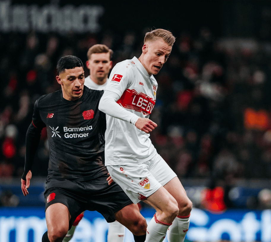 勒沃库森半场0-4斯图加特,昂达夫一射两传,莱韦林双响