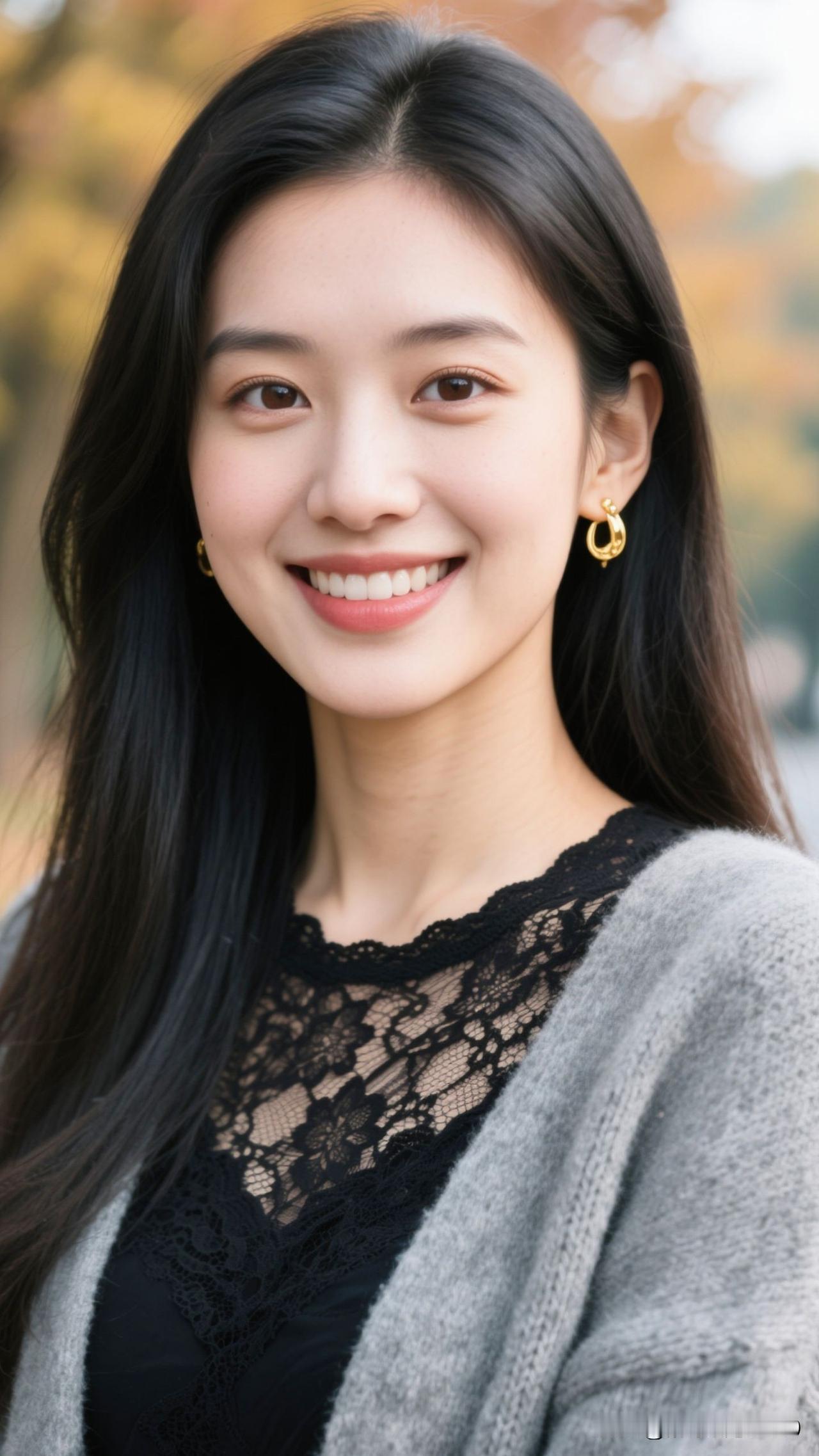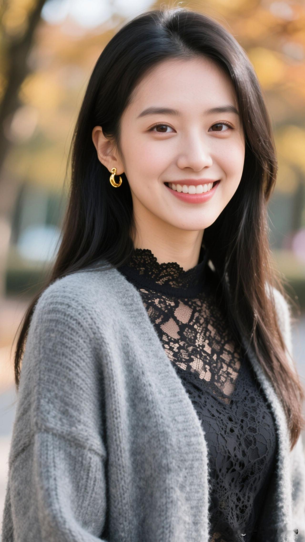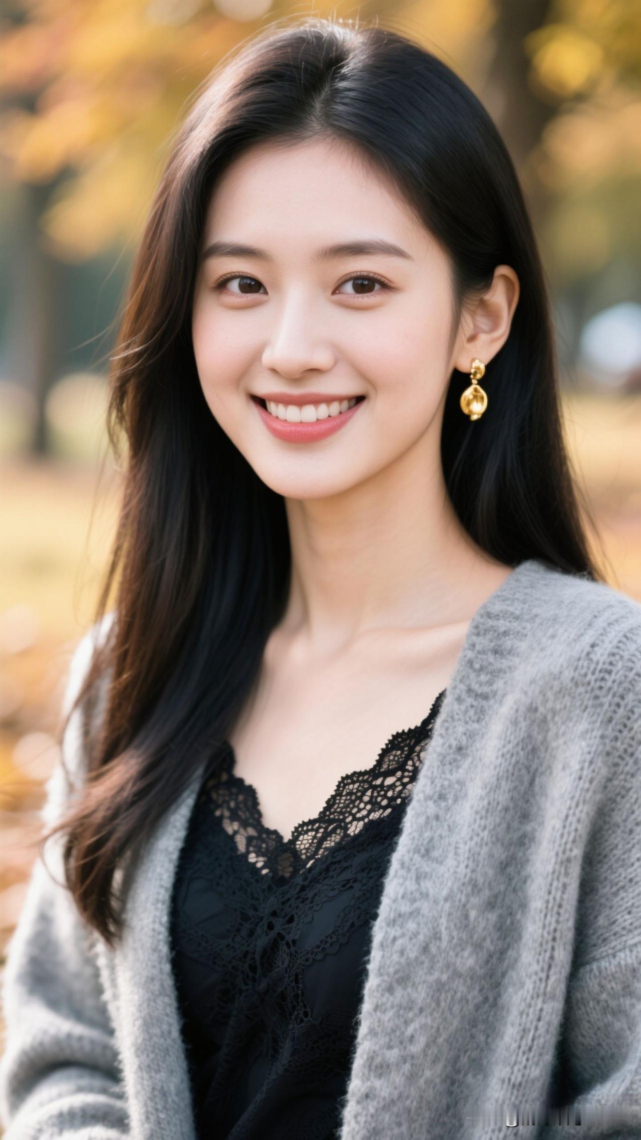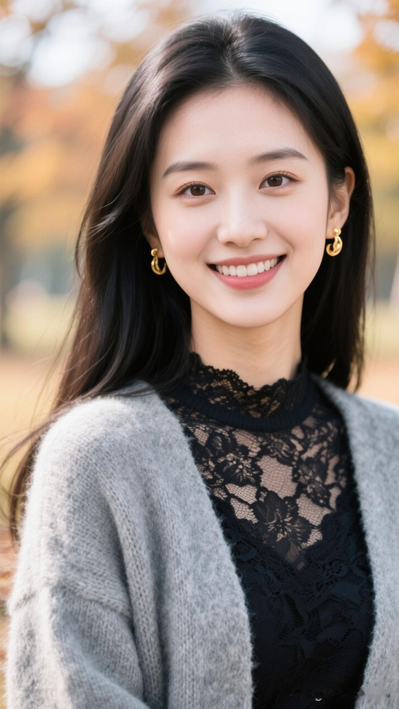 🍂 蕾丝缀着秋的柔,金环曳着光的诗,笑意漫开时,整个季节都暖成了治愈的糖罐。温