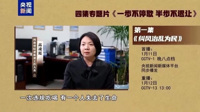 电视专题片《一步不停歇半步不退让》第一集《纠风治乱为民》,讲述纪检监察机关不断加大风腐同查同治力度,锲而不舍落实中央八项规定精神,严肃查处违规吃喝背后的团团伙伙、请托办事和利益输送,集中整治群众身边不正之风和腐败问题,让群众真切感到正风反腐加力度、清风正气在身边。总台央视综合频道1月11日晚8点档播出,央视新闻新媒体平台同步播发。