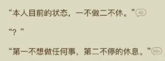 本人目前的状态,一不做二不休。 第一不想做任何事,第二不停的休息。