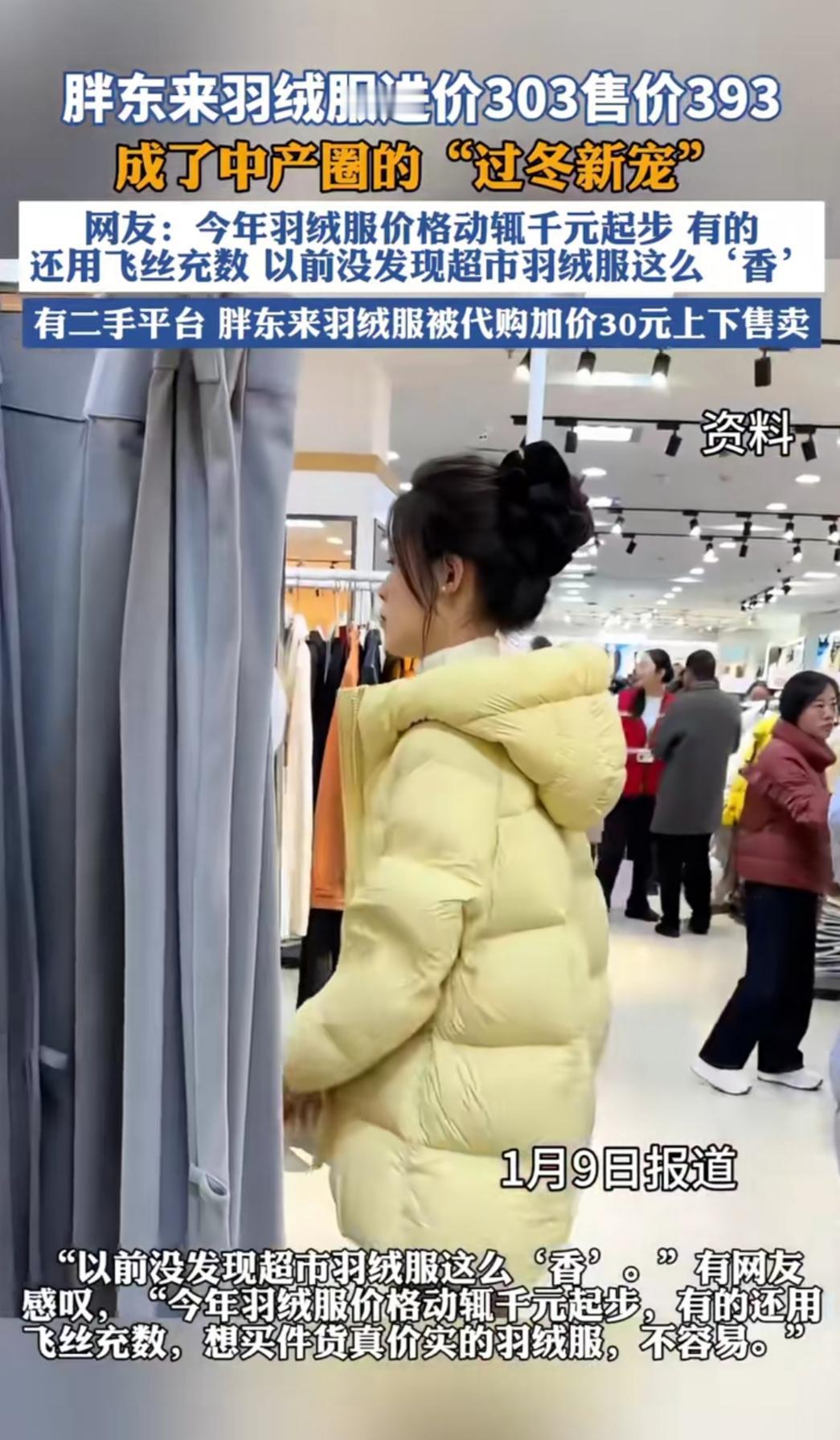谁能想到,今年冬天让中产圈抢破头的“暖冬顶流”,居然是胖东来超市的羽绒服?进价303元只卖393元,连二手平台都冒出来加价30元的代购,这热度比商场大牌新款还炸。 这事儿刚好戳中了大家的痛处——今年羽绒服动辄上千,有的还拿飞丝充数,花大价钱买件“虚胖不暖”的衣服,谁心里不窝火?胖东来这波“实在价+真料子”,直接让网友喊“原来超市才是羽绒服宝藏仓”。 有人夸“这才是商家该有的良心”,也有人说“加价代购纯纯跟风”。冬天买衣服,你是愿意为品牌溢价买单,还是蹲这种“看得见的实惠”?