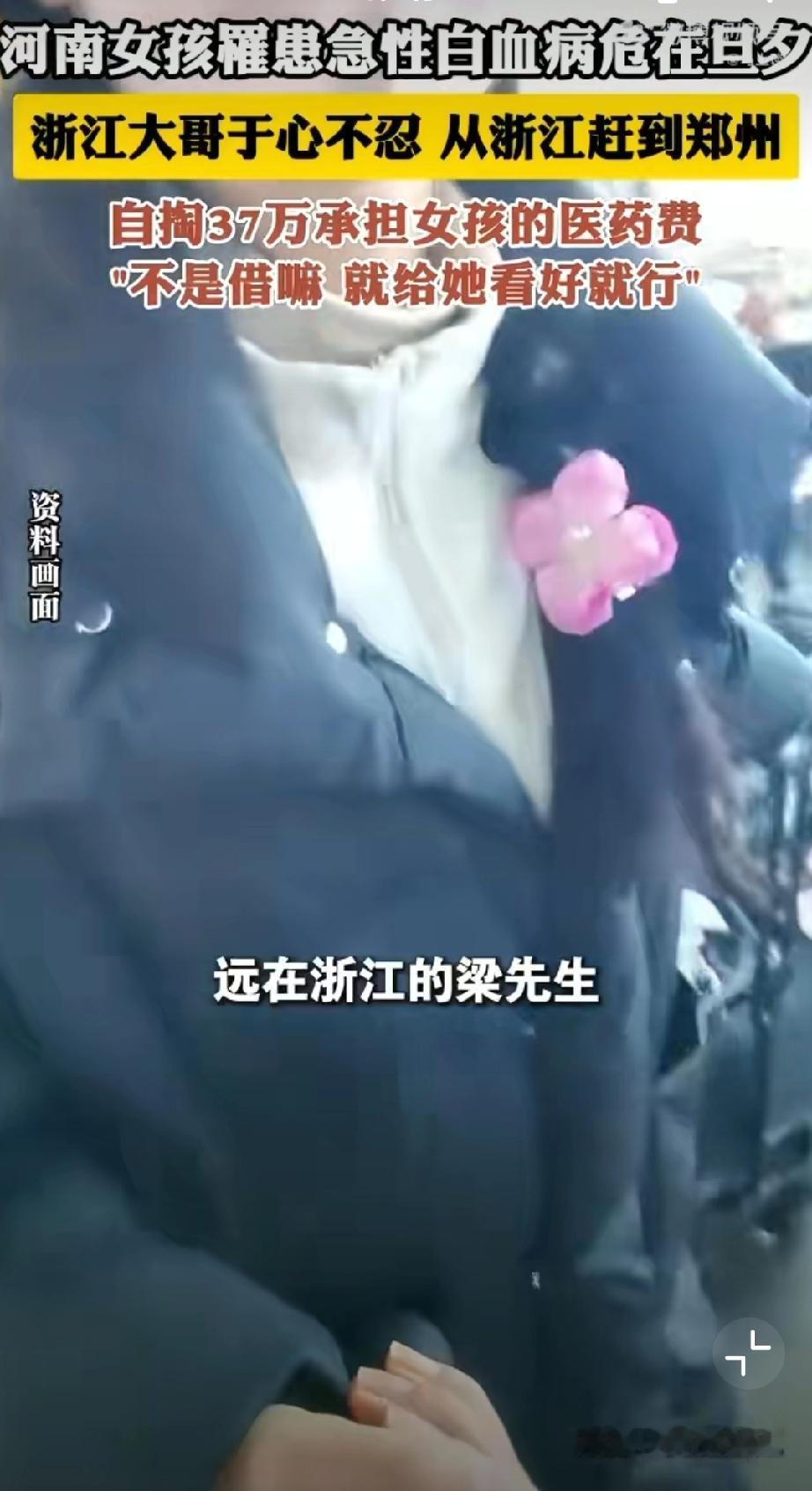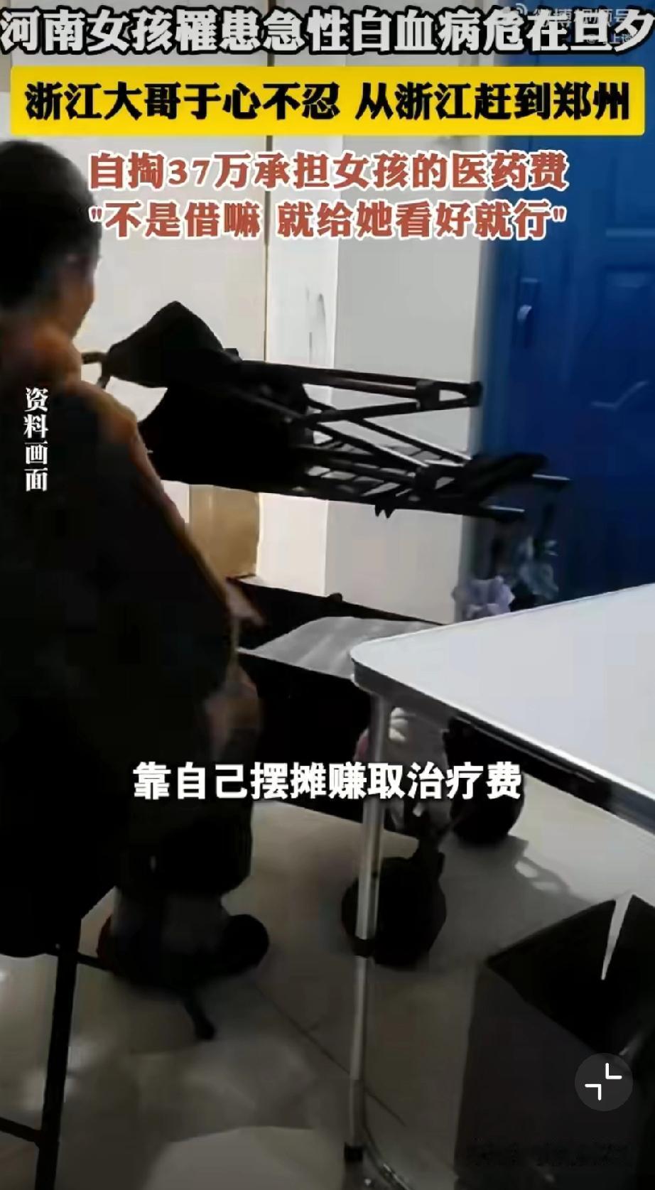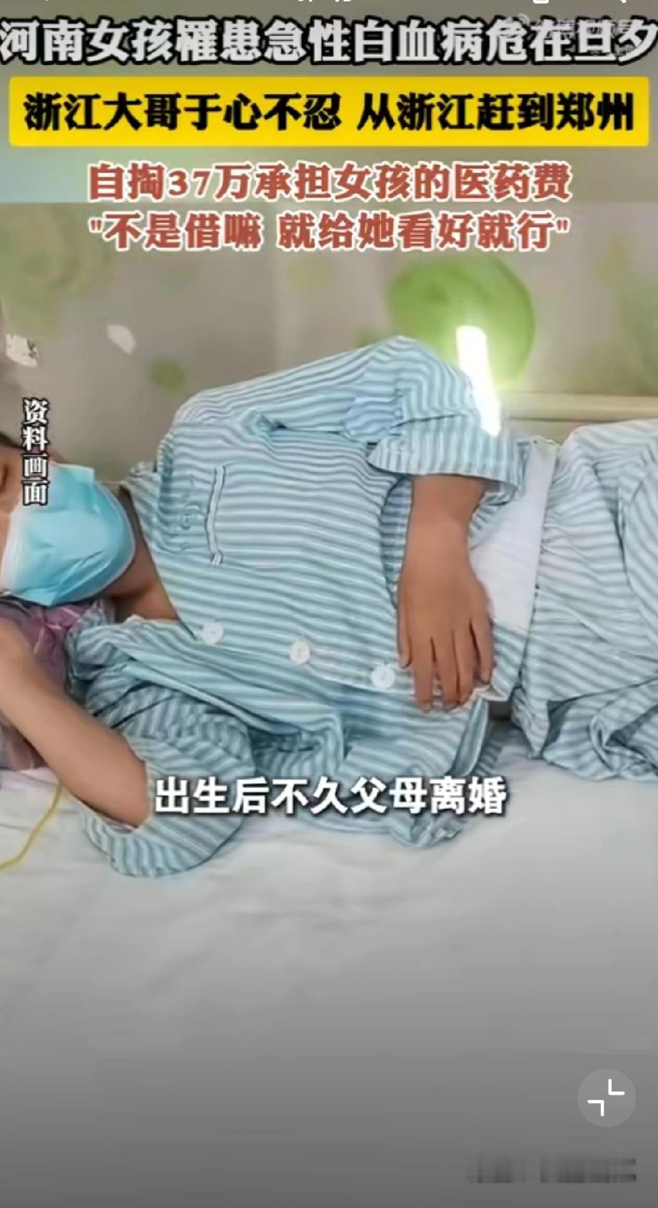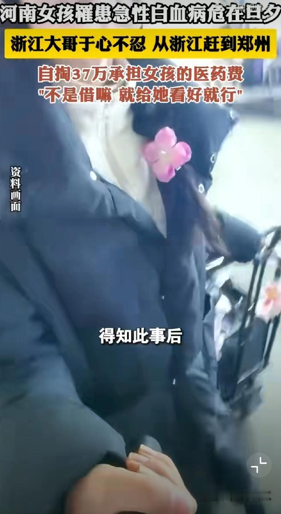 如果不是新闻报道你敢信这样的好人好事吗?河南女孩美羊羊患急性白血病危在旦夕。浙江大哥于心不忍,从浙江赶到郑州,自掏37万承担女孩医药费:“不是借,就给她看好就行”。[赞][赞][赞]