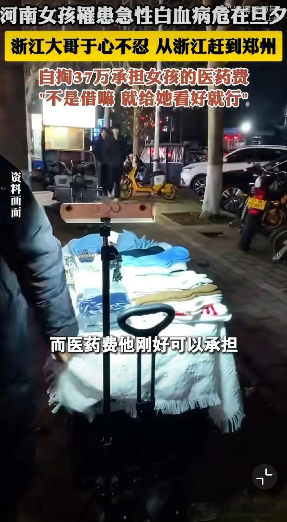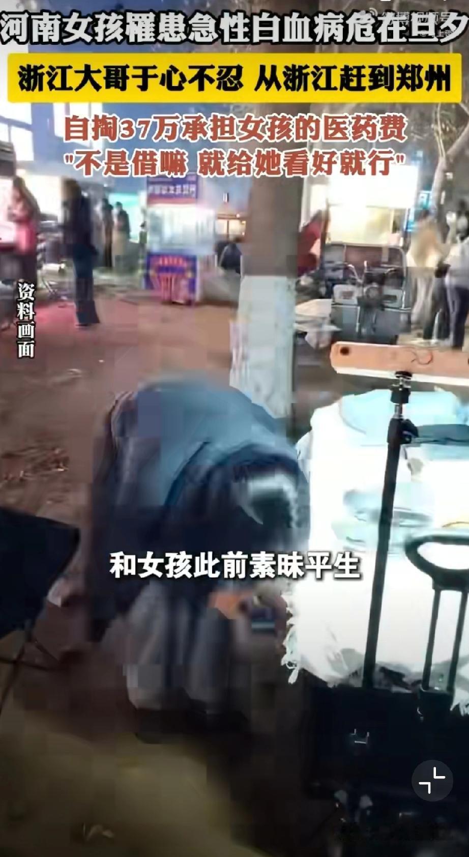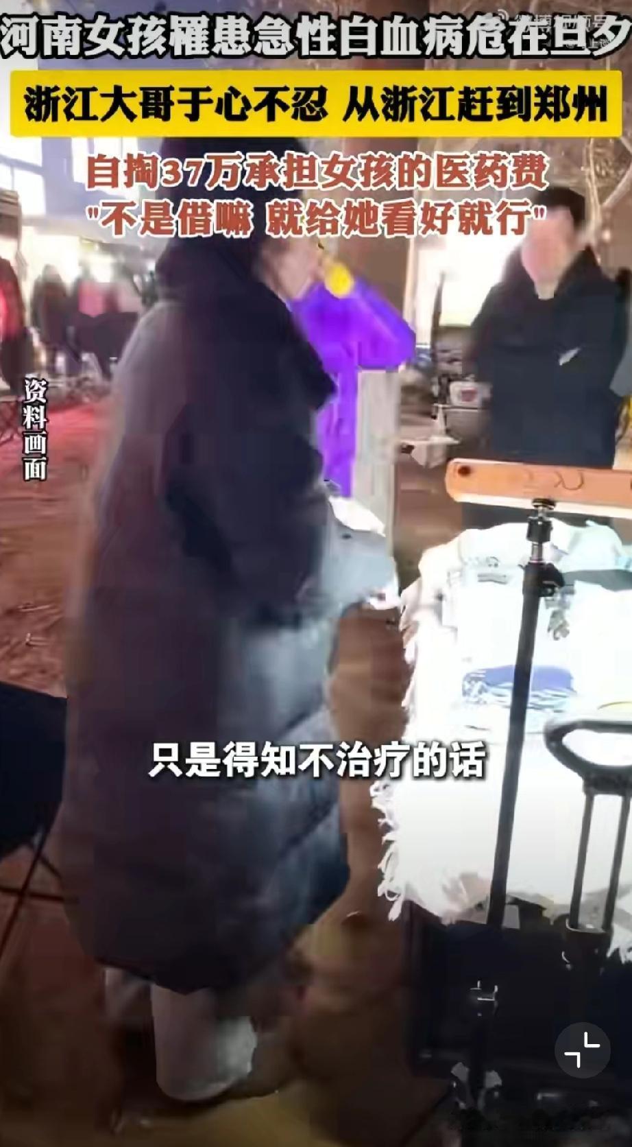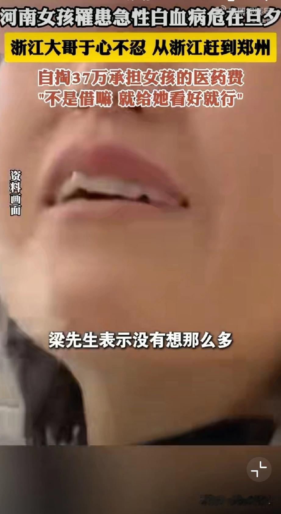 如果不是新闻报道你敢信这样的好人好事吗?河南女孩美羊羊患急性白血病危在旦夕。浙江大哥于心不忍,从浙江赶到郑州,自掏37万承担女孩医药费:“不是借,就给她看好就行”。[赞][赞][赞]