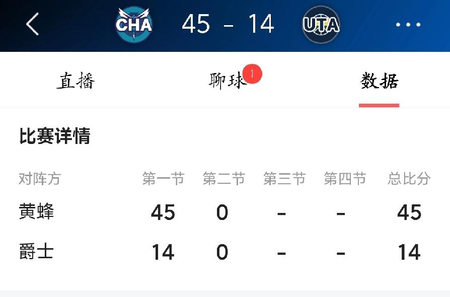 离了大谱,一节就投降! 今天NBA一场比赛,看到爵士首节14-45落后黄蜂,真是太惊人了。数据显示,爵士全队首节比赛共计投中6个球,三分球更是7投0中。这状态低迷得离谱。 究其原因,伤病影响巨大。赛前爵士就有多达五名主要轮换球员缺阵,包括内线重要球员。这严重削弱了球队的防守体系和进攻选择。此外,爵士本赛季状态本就起伏,此前10场比赛输了7场,场均失分很高。多重压力下,球队开局彻底崩盘,攻防两端都像断了电。 这罕见的单节溃败,应该是严重伤病潮与球队近期低迷状态共同作用的结果。