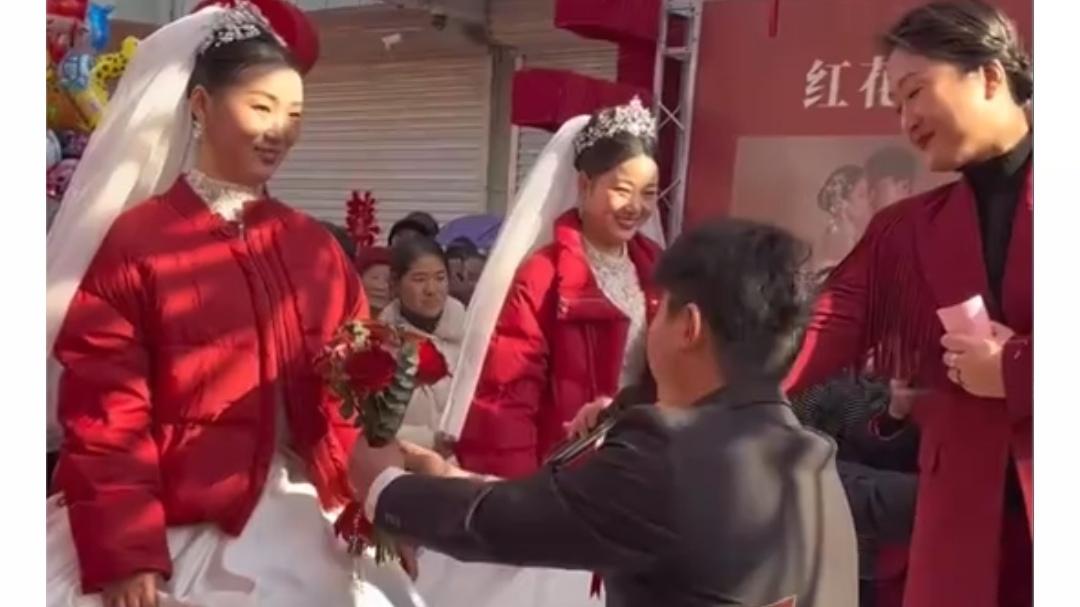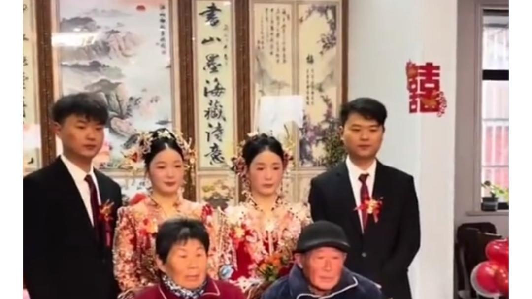 近日,安徽临泉一双胞胎姐妹花嫁双胞胎兄弟,婚礼现场有四对双胞胎 ,新娘的嫂子称,