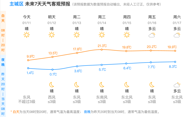 需要注意的是,下周杭州白天暖如春日,但早晚仍停留在寒冬模式。大多数时间最低气温仅有个位数,昼夜温差超10℃;其中14日温差最为夸张,最高与最低气温差距将达到16℃,早晚俨然两个季节。