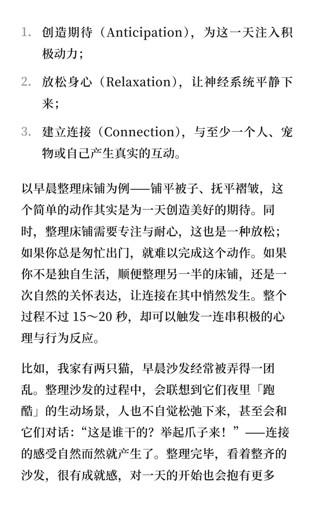 早晨决定一天的情绪与效率。一个完整的晨间程序应包含: