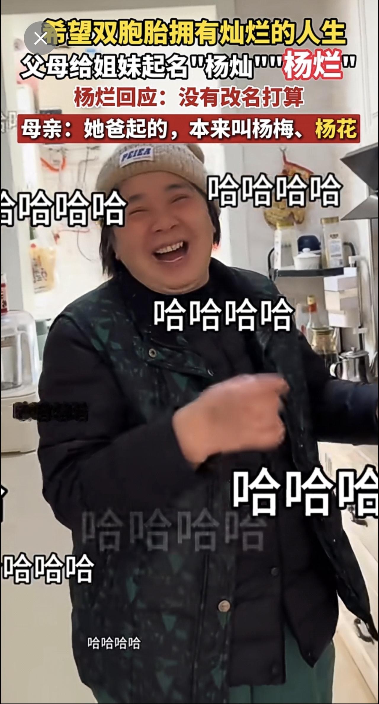 希望双胞胎拥有灿烂的人生,父母给姐妹俩分别起名叫“杨灿”和“杨烂”。妹妹幽默回应:本来他们还想叫我“杨花”呢。(编辑:心悦)