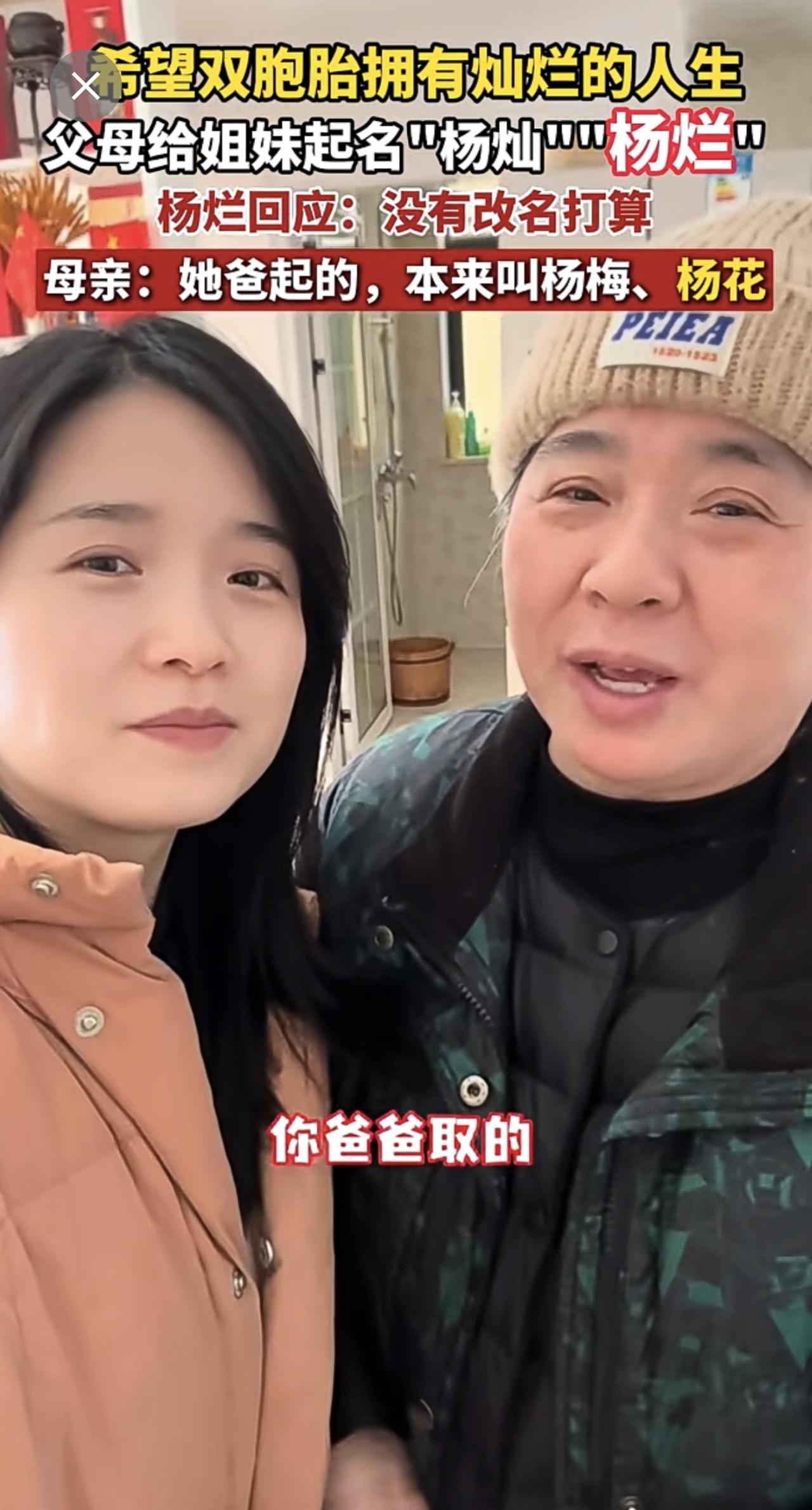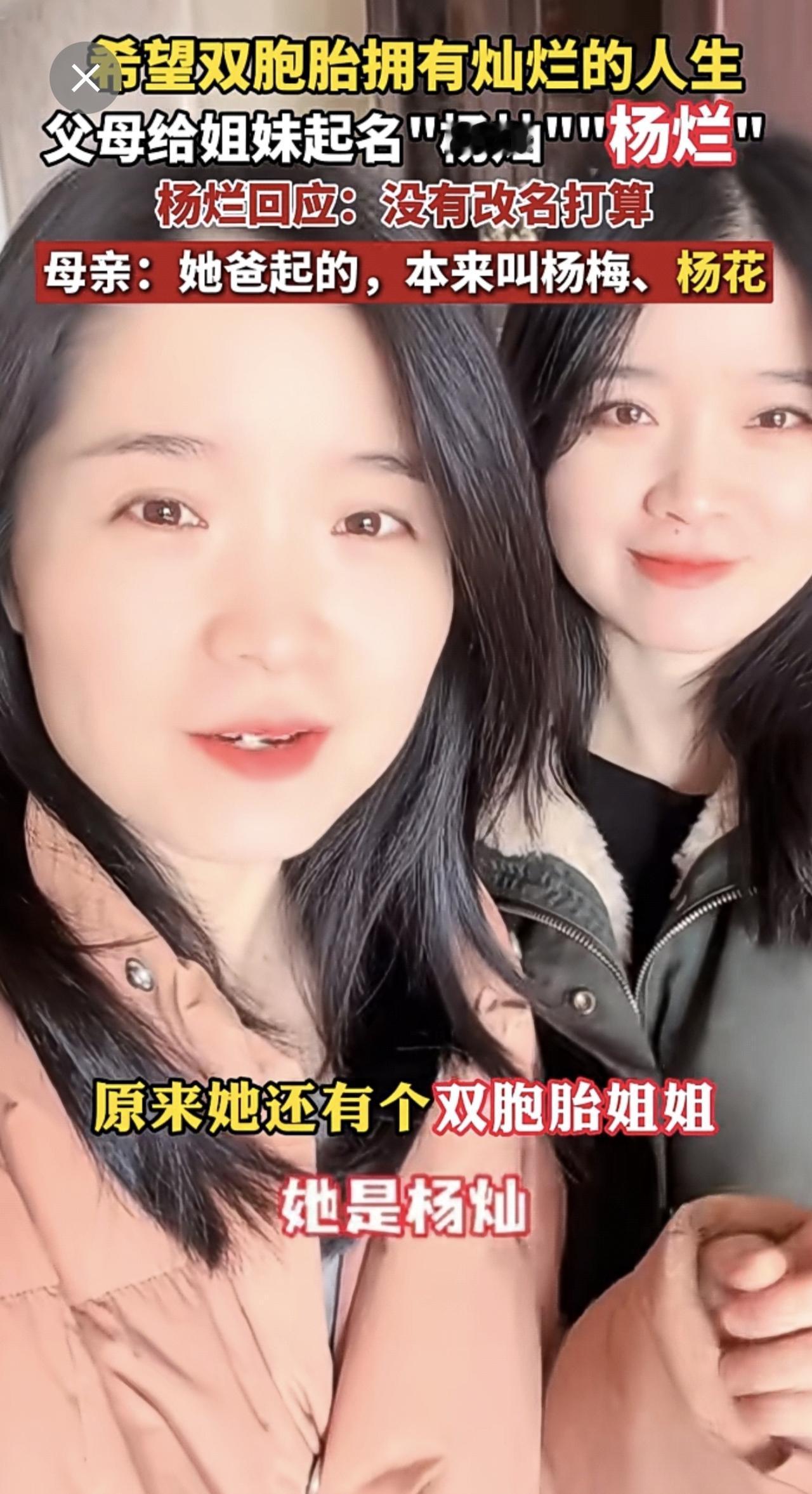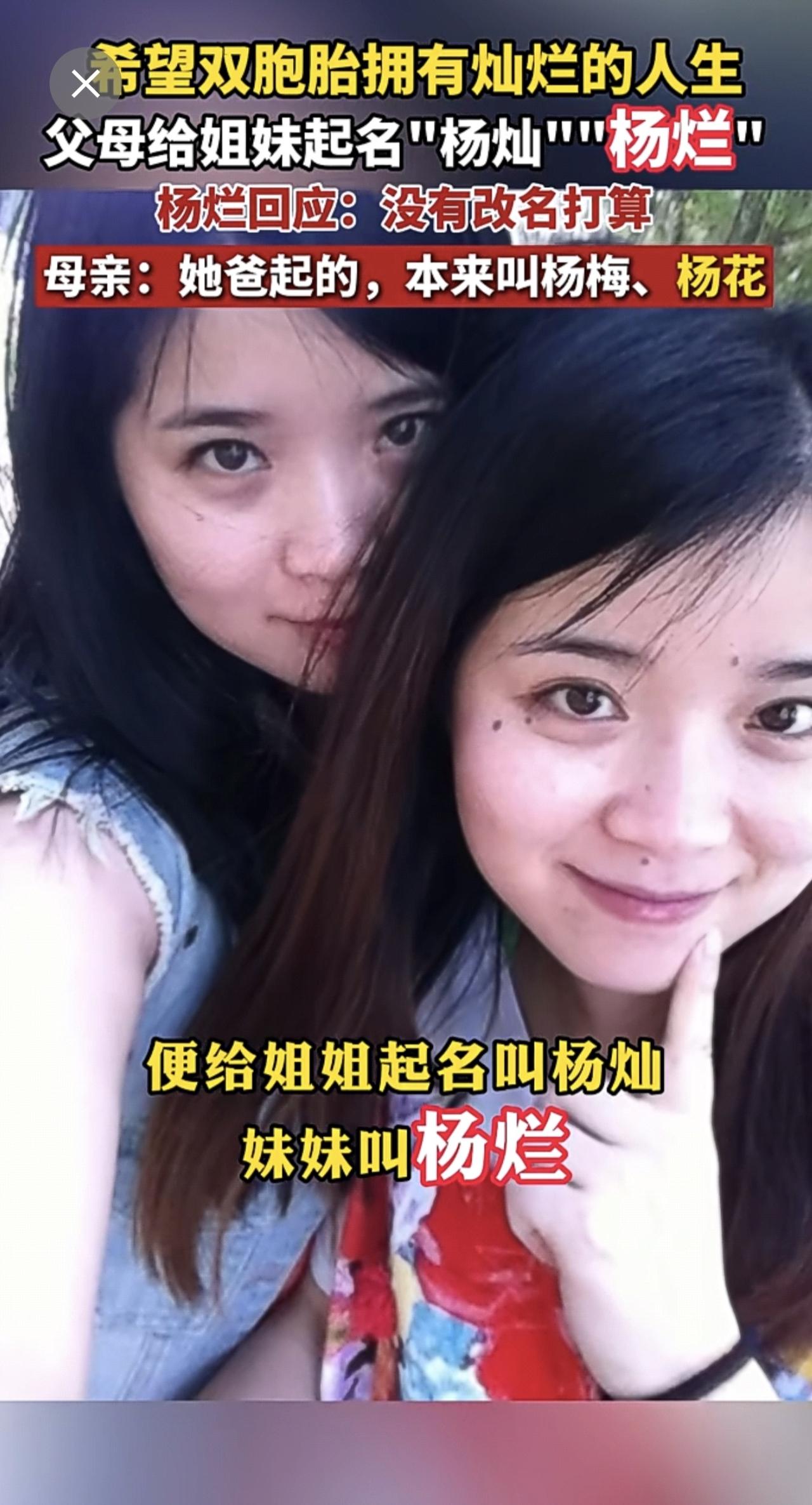 希望双胞胎拥有灿烂的人生,父母给姐妹俩分别起名叫“杨灿”和“杨烂”。妹妹幽默回应