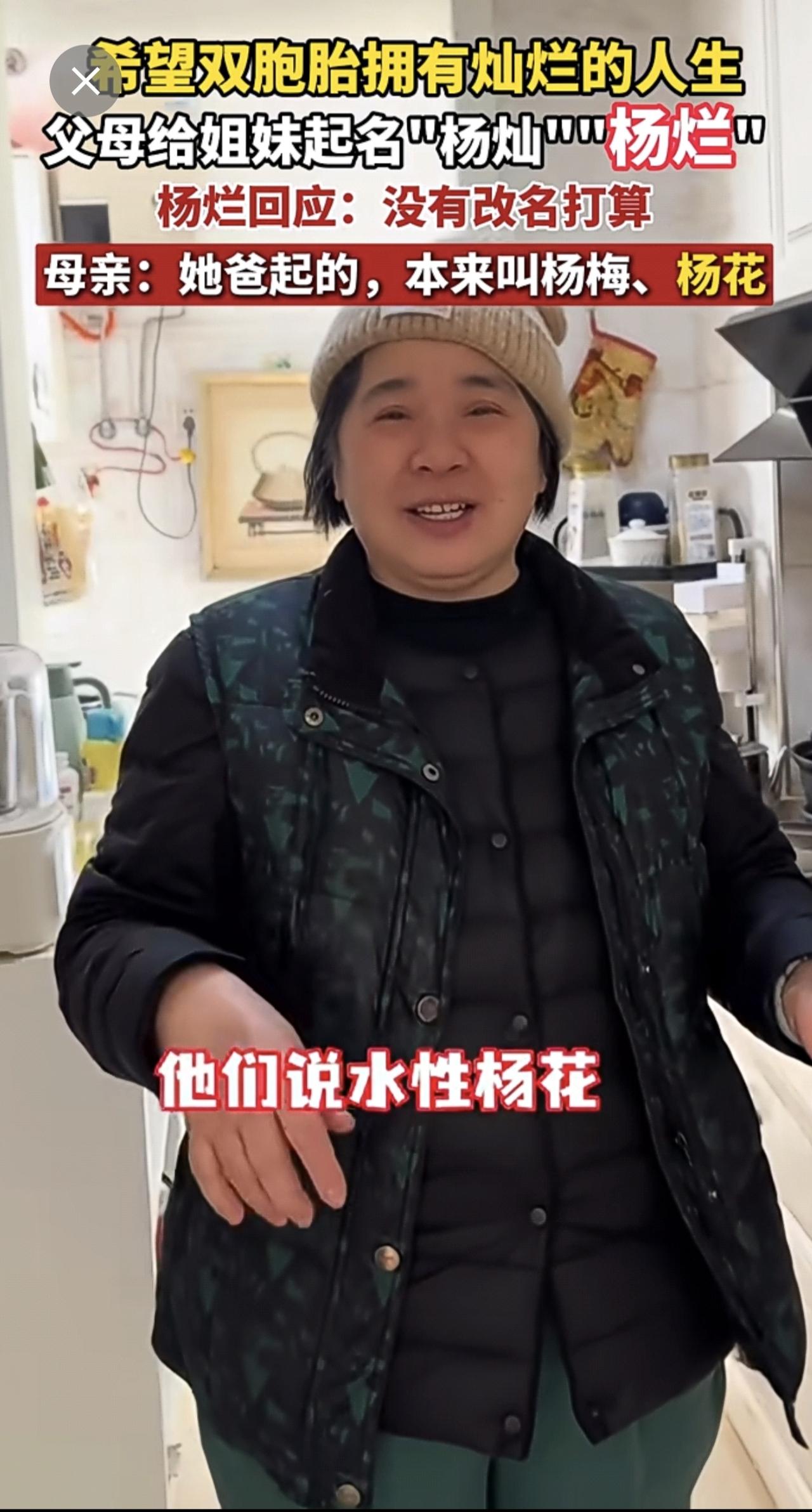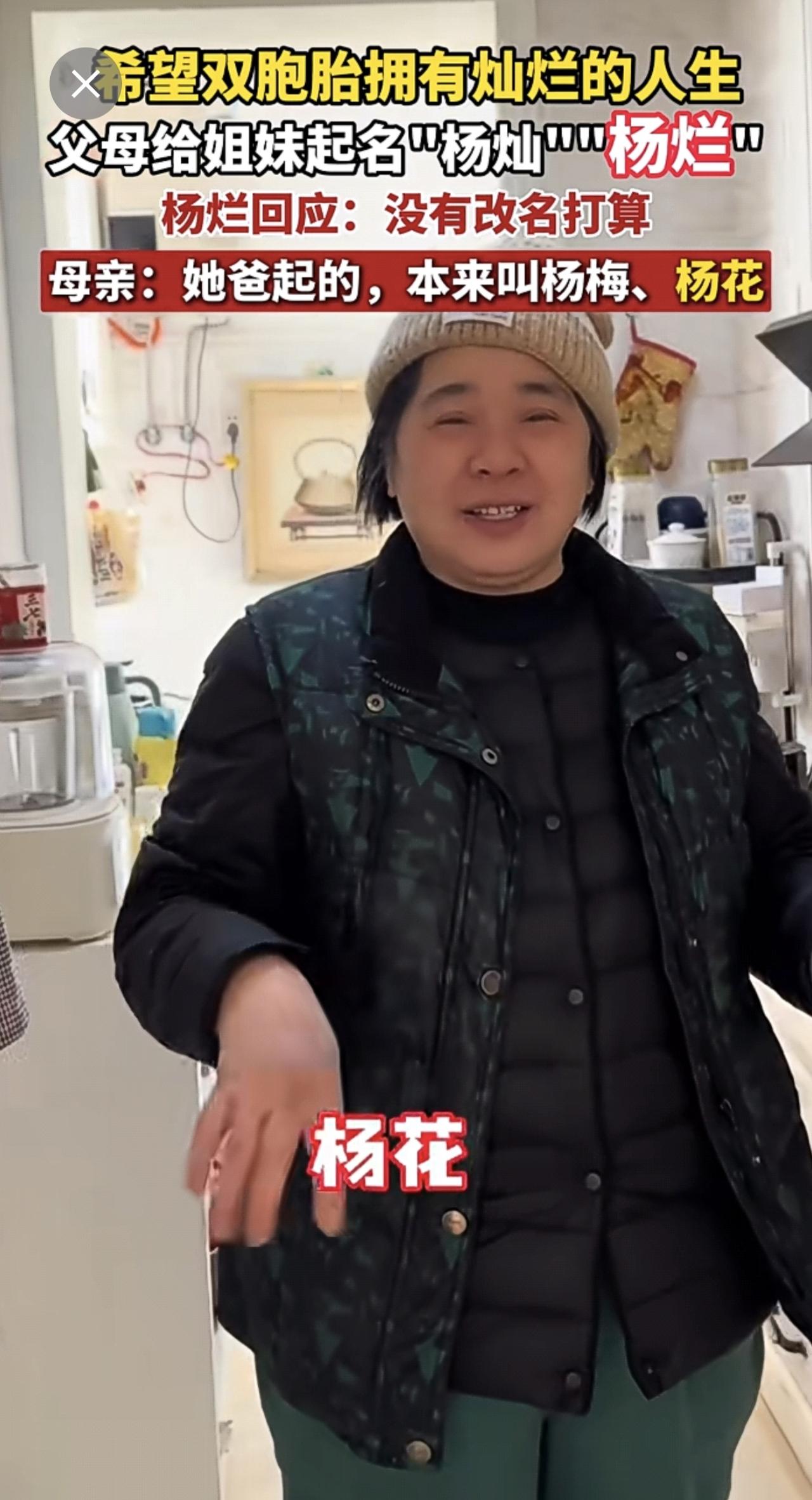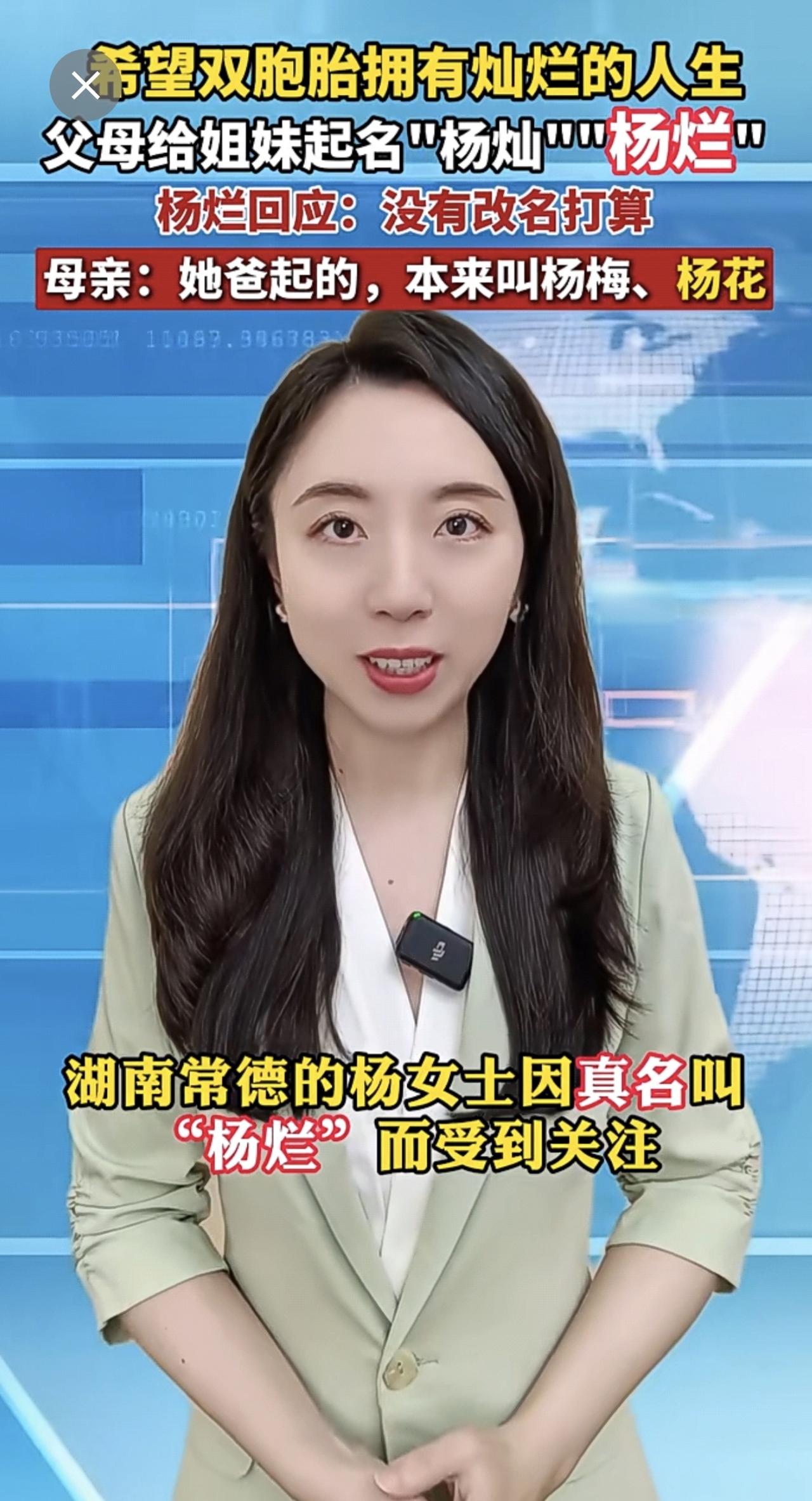 希望双胞胎拥有灿烂的人生,父母给姐妹俩分别起名叫“杨灿”和“杨烂”。妹妹幽默回应