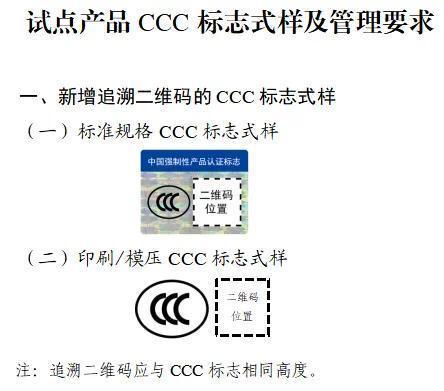 自2026年3月起,试点产品范围内新获得CCC认证证书的产品型号,应标注CCC追溯二维码后方可出厂、销售、进口或者在其他经营活动中使用。