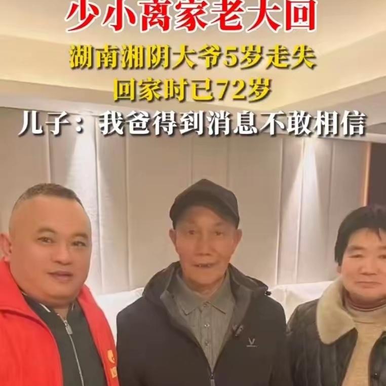 你能想象吗?一位72岁的老人,苦寻家人67年,这背后藏着多少心酸与执着!1959年,湖南5岁的李大爷跟着父亲去长沙走亲戚,码头人山人海,一转身孩子就没了。 他一直以为被父亲抛弃,那些童年记忆像针一样刺痛他。成年后,他天天盼着回家,可年代久远、线索全断,寻亲之路难如登天。 直到2025年底,奇迹出现!志愿者通过DNA比对,竟帮他找到了家。老家还有两个八十多岁的哥哥,等了他整整67年!老人立刻卖了60多只羊凑钱回家。2026年1月11日,72岁的他冲进哥哥怀里大哭,那一刻,半个多世纪的思念都化作了泪水。 原来,父亲临终前都还在找他。如今制度越来越好,儿童失踪能立马报警,“团圆系统”也很强大。大家觉得孩子走丢家长该负全责吗?快来评论区说说你的看法!