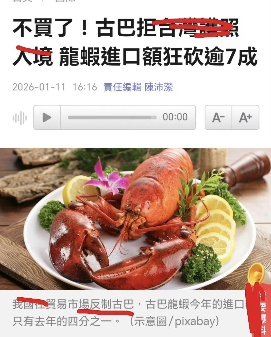 古巴拒绝台湾省护照入境,民进党当局急眼了,拒绝进口古巴龙虾!不知道台湾省一年能进