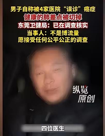 东莞男子咳嗽被4家医院诊为癌症,手术前助理医生:肺干干净净的! 广东东莞,男